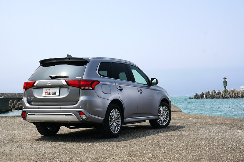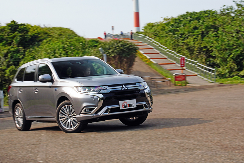 換裝全新PHEV動力系統,動能充足且節能。 在試駕當天,自取車處至郊區拍攝地的路途中,前半段也的確完全使用純電模式行駛,在以一般空調、音響都開啟的狀態下,自台北市區至三芝的路程約30多公里,都是以純電行駛,由於取車時電池僅有約7成電力,因此回推原廠數據,可證明原廠所提供的新年式OUTLANDER PHEV純電行駛續航力在現實狀態下是可以達成的;也就是說車主若在家中與工作地點距離在52公里以內,且兩地皆具備充電設備,在平日通勤時就幾乎完全不需要使用引擎動力,達到零油耗效果,即便行駛拉長,也可以透過系統自動有效地分配動力輸出模式,創造最佳的動能效率,原廠提供的平均油耗數據為52.4km/L,節能表現十分出色。