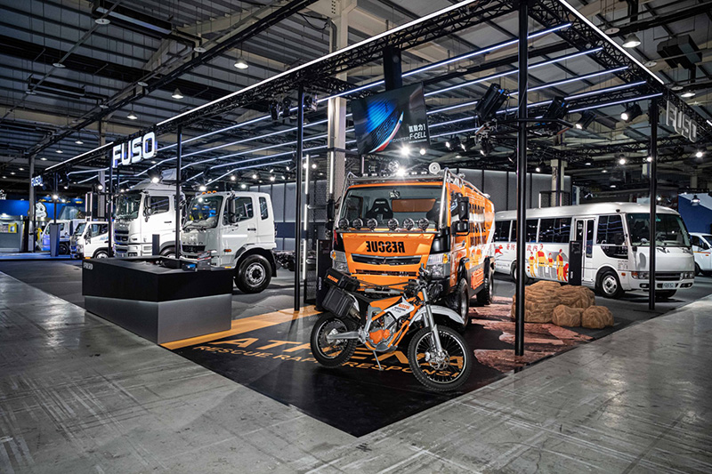 Fuso總代理台灣戴姆勒亞洲商車(DTAT)參與2021 商業車博覽會,重量級明星產品同台展演,FUSO eCANTER F-CELL氫燃料商用概念車及與日本國士館大學合作開發的救援車Athena皆為首次登台亮相,成為本屆商車展中全場焦點! 現場還有熱銷產品陪同展出,如5噸車第一品牌PRO 5、17噸超長軸貨卡及35噸旗艦重卡Super Great,以及全台唯一專屬打造的消防署特殊搜救犬Rosa巴士也獲邀在會場,Fuso熱情邀請全台頭家及民眾共襄盛舉,搶先體驗商用車的最新科技,並於現場推出「跟Fuso一起氫鬆環保好生活」期間限定活動,凡現場打卡或完成指定任務拍照上傳,即可獲得Fuso精選好禮乙份。
