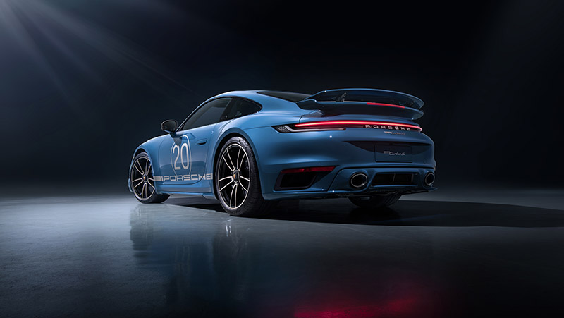 全新 911 Turbo S China 20th Anniversary Edition是專為中國市場打造的市場限定車款,整體設計靈感源自保時捷深耕中國20載,洞察市場喜好而來,首先在車色上,共提供五種專屬車色,包括因Gulf石油塗裝之917而聞名於世的海灣橙,而在本次上海車展亮相的奧斯陸藍,則源自保時捷首款跑車356,另外三款顏色分別為星光寶石紅、薄荷綠及維奧拉紫金屬漆。