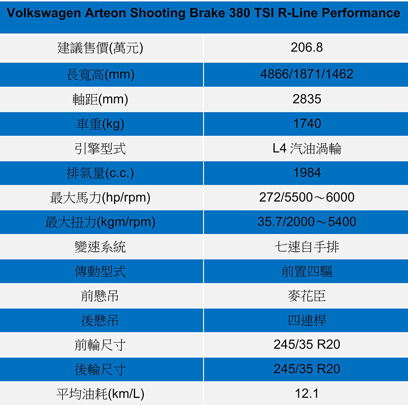 Arteon Shooting Brake 380 TSI R-Line Performance彌補了當初Arteon Fastback 330 TSI R-Line所欠缺的美好。