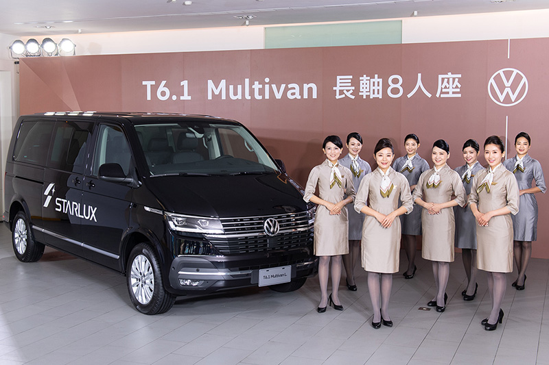 自2020年下半年,福斯商旅陸續引進T6.1車系中各式車款,皆有亮眼表現,2021年4月福斯商旅再針對高端商務之多人乘載需求,首度引進採獨立8人座椅配置 (2-2-2-2)之T6.1 Multivan長軸版,同時,更獲得星宇航空高度肯定,成為星宇航空機組人員指定座駕!活動現場特別邀請諸位美麗動人的星宇航空機組人員出席盛會,演繹並分享其與福斯商旅T6.1 Multivan長軸版的豪華乘座禮遇。