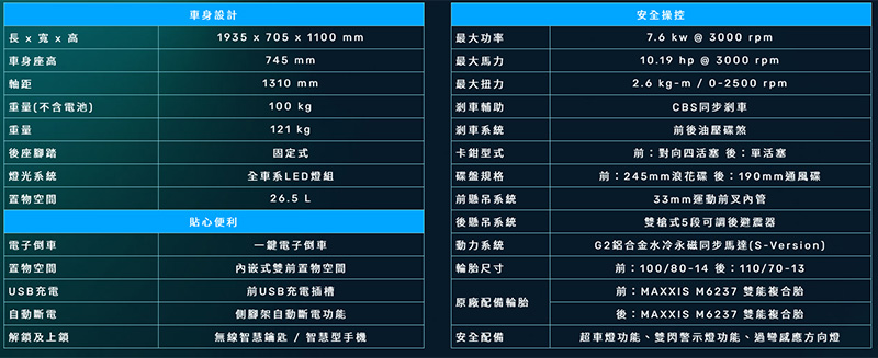 Run採用之G2 鋁合金水冷永磁同步馬達馬達,輸出動力數據為7.6kw〈相當於10.1PS最大馬力輸出〉。
