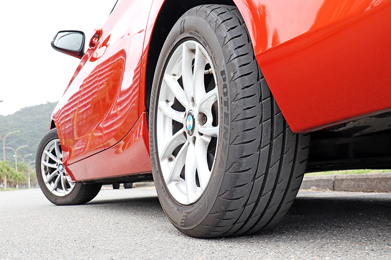 測試使用的車輛是2016年份的BMW 118i。 而我們自2021年1月中換裝至今,使用超過四個月的時間,累積里程超過4000km、近5000km後,有幾項特色可分享;甫換裝時,普利司通經銷商技師,將胎壓打至約40psi,在此之前,原認為一般印象中的日系高性能胎,胎質都會偏硬,以利提供更好的路感,且較大的胎塊也會讓胎噪增加,但令人訝異的是,即使Potenza Adrenalin RE004甫裝上時的胎壓高於原廠建議值,卻沒有預期的胎質較硬、彈跳增加的現象,甚至比原本使用的同品牌神省胎Ecopia NH100、以及原車〈測試車輛為2016年份的BMW 118i,輪胎尺寸為205/55R16〉出廠時標配的他牌失壓續跑胎還來的更舒適,更為柔韌滑順,而且路感明顯清晰許多,轉向手感也變輕盈,同時,胎噪也比預期低非常多,抓地力則是全面提升,然而最神奇的是在油耗表現上,使用Potenza Adrenalin RE004的這段期間,在行駛使用狀態皆無太大改變下,平均油耗竟然可以與Ecopia NH100相當,約莫介於11.4~11.8km/h之間,兩者幾乎相差不多,且都比出廠配置的失壓續跑胎進步了約0.8~1km/L,相當令人驚艷,之前神省胎一口氣讓油耗進步約1km/L,就已經讓我感到很讚嘆,Potenza Adrenalin RE004竟然可以維持同水準,實在是很神奇。