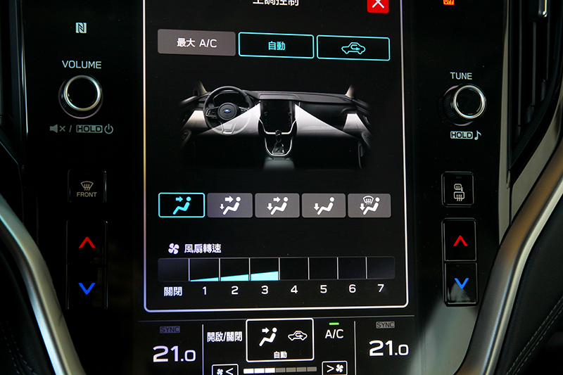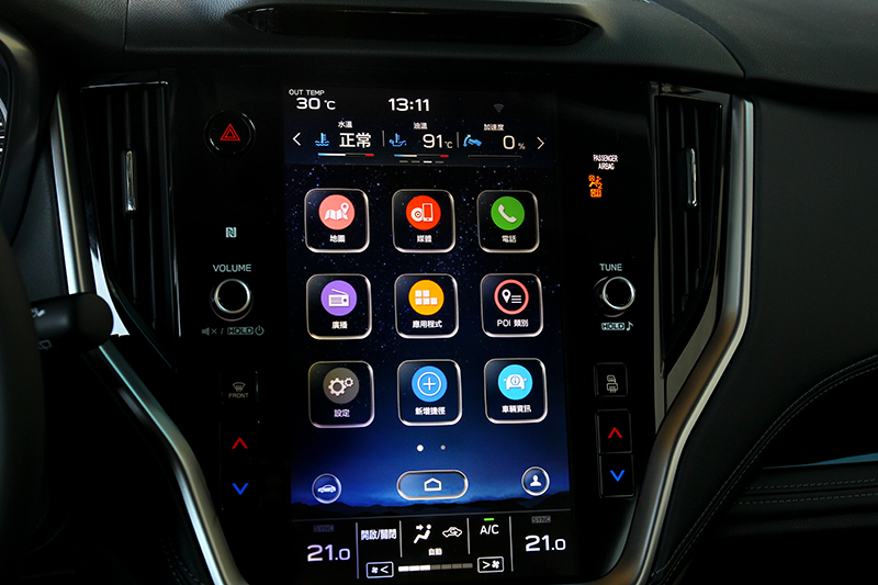 兩年前在看Outback廠圖就被座艙設計吸引,因為在此之前Subaru於車室設計較無亮點,但新世代Outback不僅搭上潮流換上11.6吋中控螢幕,格局設計也進行全面改革,飾板用料也讓座艙有著更好的質感氛圍。此等設計不僅提升質感也帶來科技感受,同時也將以往熟悉的空調、儀表上方顯示的油溫、智慧駕駛輔助系統作動等資訊全數整合至螢幕,乍看原以為會複雜但其實圖示設計與介面則相當直覺,當然最重要的也支援Apple CarPlay/Android Auto連結功能。