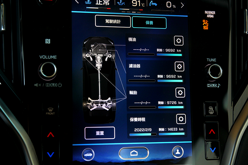 空調、油溫/水溫、保養等資訊控制皆整合至中控螢幕內。