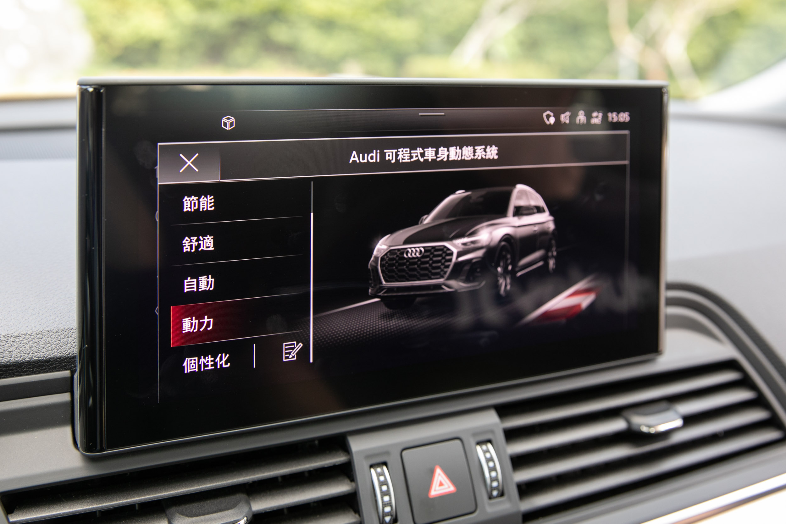 Audi 可程式車身動態系統提供五種駕駛模式,可依照駕駛習慣與用車環境自行調整。
