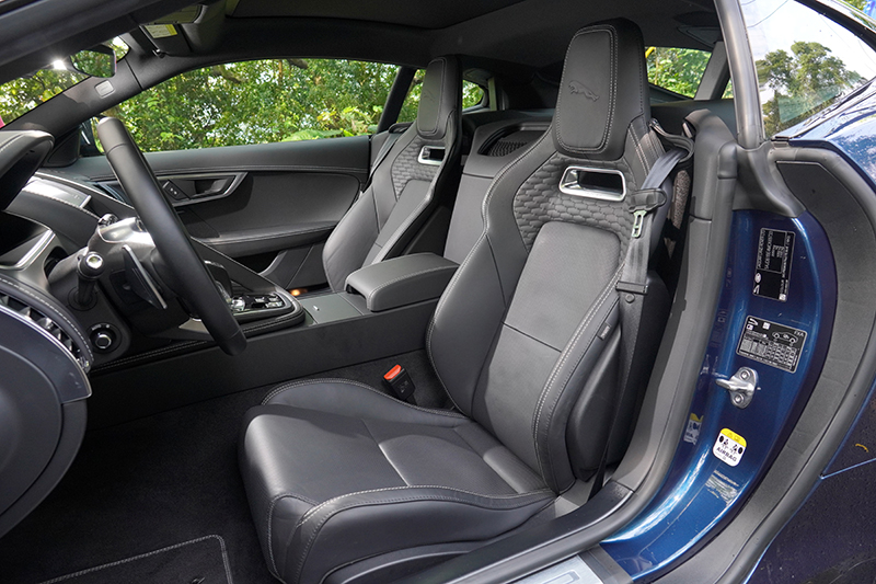 F-Type自2013年問世以來,到2019年所進行的本次改款工程,應該會是Jaguar在品牌轉型前,F-Type的最後一次改款了,在此之前,我們也曾試過入門的P300 R-Dynamic車型,而這回的改款明顯的改變就是將原本的直立四角形改為了平置刀刃細長樣式,搭配J Blade LED日行燈,並且加大了氣壩與進氣口的面積,並在水箱護罩邊緣的鍍鉻飾框則是增加了下緣的F-TYPE字樣,車尾部分則是換上新設計的LED尾燈與後保桿,另外還修改上引擎蓋賽熱口樣式,以及於前葉子鈑上的通風口飾蓋也加了捷豹圖騰,至於P300 R-Dynamic與P450 R-Dynamic兩者在外觀上最明顯的差異就是,P300 R-Dynamic是採中置單出排氣尾管設計,P450 R-Dynamic則是採左右各二的四出排氣尾管,P300 R-Dynamic標準配置19吋胎圈組,P450 R-Dynamic則是配20吋胎圈組。而本次試駕車還選配了黑色套件,所有車上的車型徽飾與空力套件都採黑色烤漆處理。