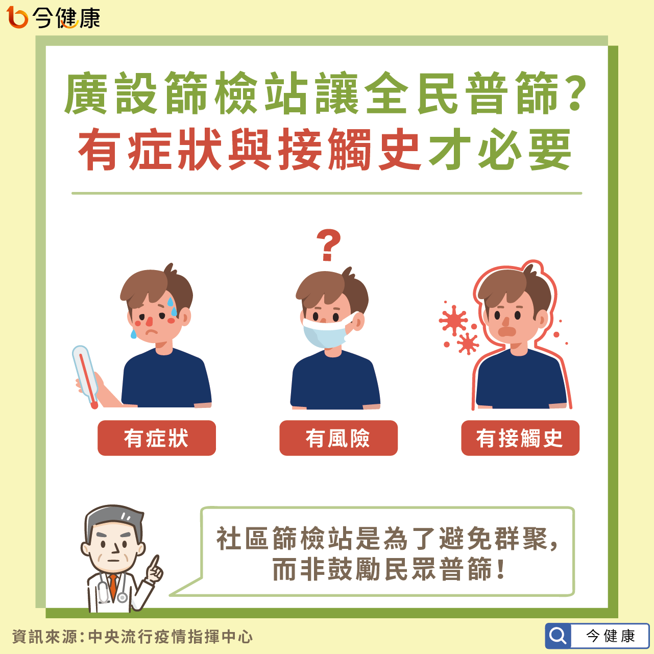 廣設篩檢站讓全民普篩?陳時中:有症狀與接觸史才必要