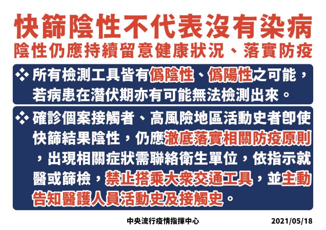 快篩陰性不代表未染病 有症狀應聯繫衛生單位