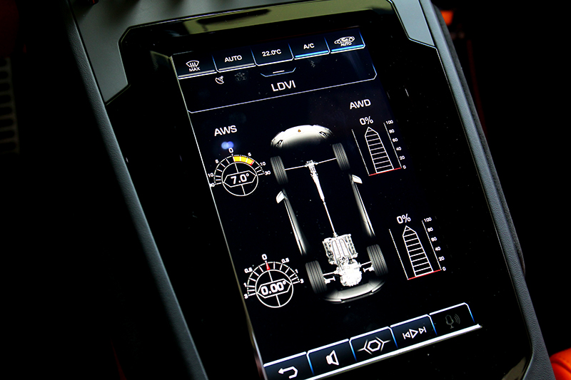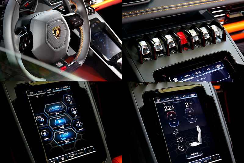 此外,Lamborghini看似繁瑣的座艙布局,實際在使用時,卻比現今許多車載系統都好用,無論沿用飛行器設計的開關介面、觸控車載系統,或是將燈具開關也整合於方向盤的設計,都可以在短時間內上手,可以看出身為跑車專業製造商,Lamborghini在操作介面上,仍然保有可以讓駕駛者可以保持專注駕駛操控的基本原則。