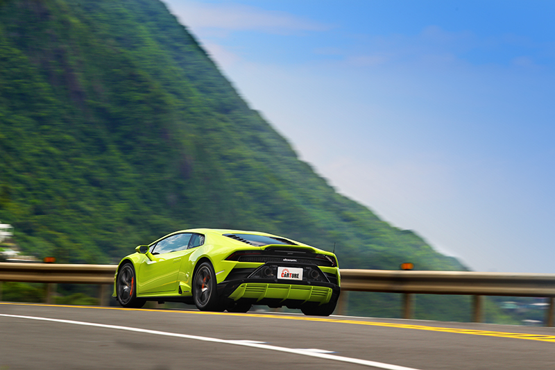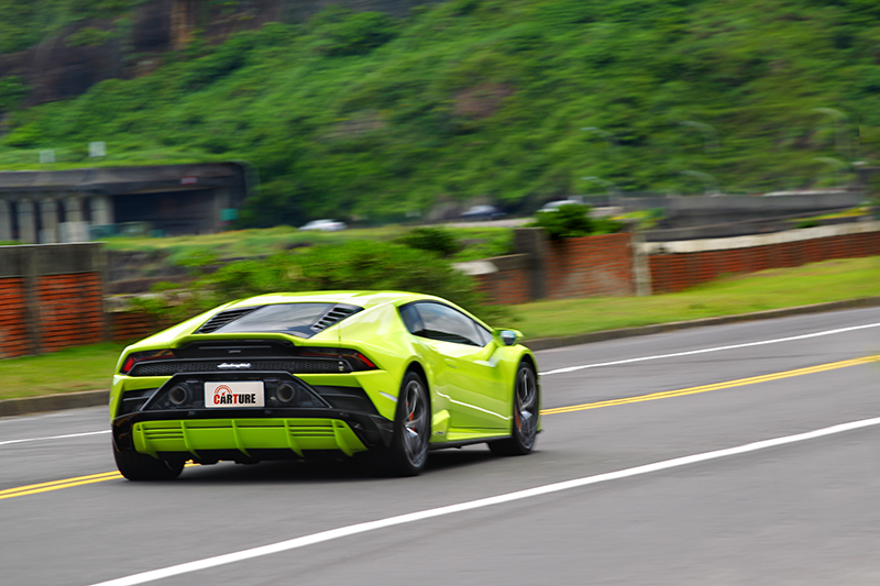 Huracán EVO同樣有三種動態模式可選,在STRADA標準模式下,前後軸動力分配比例為50:50,Sport模式為10:90,讓藝高人膽大的朋友,可有更大的漂移空間,而CORSA模式則為40:60,在保持較多的後輪驅動下,維持穩定性與靈活度。 在一般道路上,我們不敢妄自激烈操駕,只能趁稀少車流稍微加快速度,稍稍感受Huracán EVO所帶來的激情,每個平貼路面刷過彎道的俐落,讓人難以忘懷,中置引擎配置讓整體重心更為集中於車輛中央,搭配四輪傳動系統下,早已不會有駕駛時感覺背部有重物偏擺的現象,人車很容易融為一體。