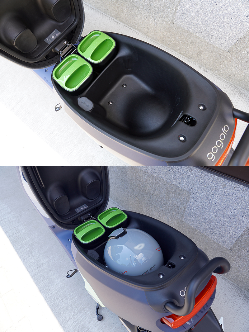 另外,在Viva MIX Belt上的坐墊採所謂的STYLO™ 行動沙發座椅墊,包覆類織布的塑料材質,質感不錯,坐墊高度則為745mm,在眾電動速克達中算是中等高度,雖然STYLO™ 行動沙發座椅墊表面止滑度不錯,但角度卻有點略微向前傾,會有騎著騎著人就會往前滑,騎車時得用大腿多花一點力氣支撐,騎一天下來臀部頗為痠痛,雖然Gogoro向來強調他們很注重騎乘的人體工學,但似乎就是不合我的體型,隨著PBGN聯盟中的車款越來越多,其他以造機車起家之品牌的產品,似乎在人體工學上更合我的胃口。
