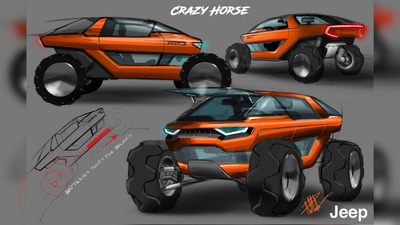 這次獲得冠軍的是一位12年級生名叫Vincent Piaskowski,,他的作品名稱為Jeep Grand Teton,從稿圖可見他刻意將Jeep的引擎蓋更往上緣延伸,並具備封閉式水箱罩及細長狀頭燈,猜測應是一部純電越野車,結實保桿與高底盤的特性依舊展露出Jeep的越野本性,不過長軸距的車體卻採雙門結構,玻璃比例頗大的車艙搭配低扁車頂營造出成類太空艙的概念,車尾同樣延續車頭採細長狀的尾燈輪廓,後保桿則採階梯狀造型以利於攀爬拿取車頂物件,整體看起來相當前衛並饒富個性,Piaskowski已是第三次參加該設計比賽,去年獲得第二名,前年第三,這次終於拿到冠軍也看到他的設計功力已有顯著進步。
