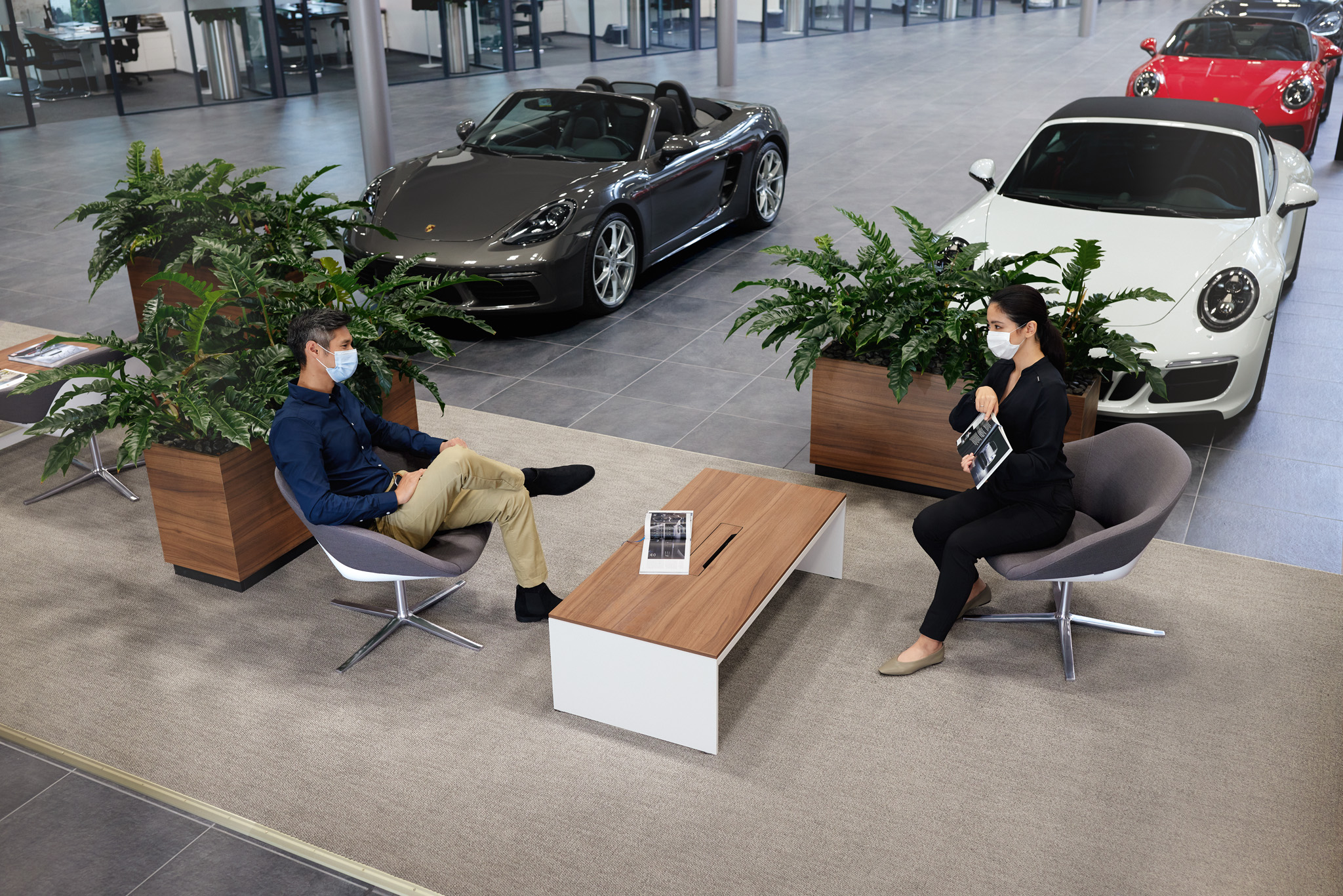 全台保時捷中心、保時捷都會概念店及售後服務據點皆已全面施行實聯制、配戴口罩、體溫量測,以及落實酒精消毒雙手的進出管制,並同時調整室內空間,加大座位間距、採取梅花座位配置,以保持安全社交距離,降低傳染風險。部分仍提供交、取車保養作業的保時捷經銷據點,所有流程將採行「低接觸」機制辦理,以保障車主與員工的健康;各地保時捷經銷商也將因應各縣市最新情況調整服務內容,部分保時捷經銷據點將調整每日營業時間至下午 7 點;而客人仍可透過保時捷體驗專家(Porsche Pro)與銷售顧問可提供線上諮詢服務,所有防疫措施皆將配合政府指示辦理。