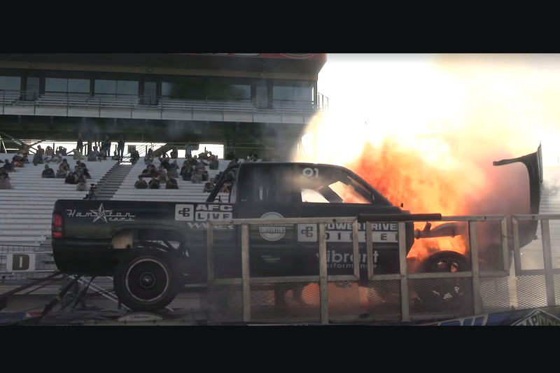 對於改裝玩家來說除了汽油引擎柴油動力也同樣能進行大幅改裝,尤其對美國人來說更是追求馬力一拜,然而為了要得知改裝後馬力數據,上馬力機測試就是最佳方法,對此於Indiana舉辦的Ultimate Callout Challenge活動,不僅是玩家必朝聖的活動,同時也有馬力測試項目,讓其他玩家面前大秀馬力。而就在日前Ultimate Callout Challenge活動中,有名玩家將Dodge RAM進行大幅改裝,預在馬力測試機上挑戰3,000hp馬力,為了達到馬力數據拼命踩油門,但可惜最後未能達成,因為他的引擎爆炸了。