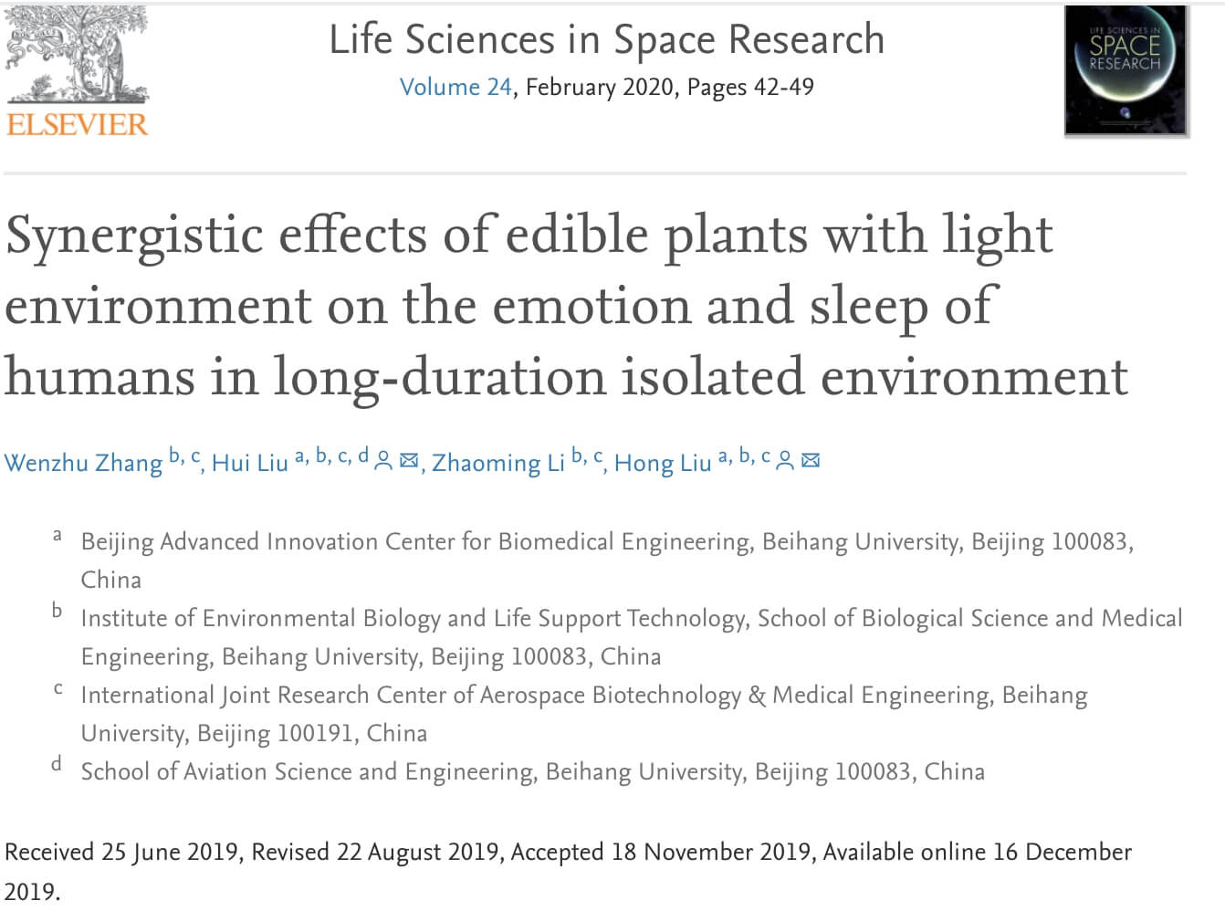 Synergistic effects of edible plants with light environment on the emotion and sleep of humans in long-duration isolated environment