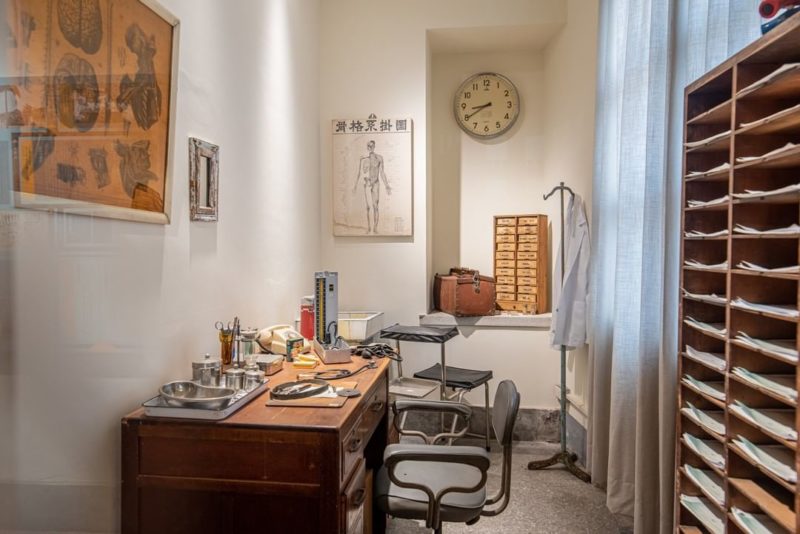 由老診所改造,純白色的外觀,看不出是棟年紀很大的建築,一樓的老沙發、留聲機和通往二樓的水泥樓梯,卻彷彿讓人走入時光隧道,內部展示了許多當年看診的醫療設備,並重現當時的場景。霧峰農會更在裡面設置了農學食堂,採用當地新鮮有機蔬果食材,提供健康美味的特色料理。