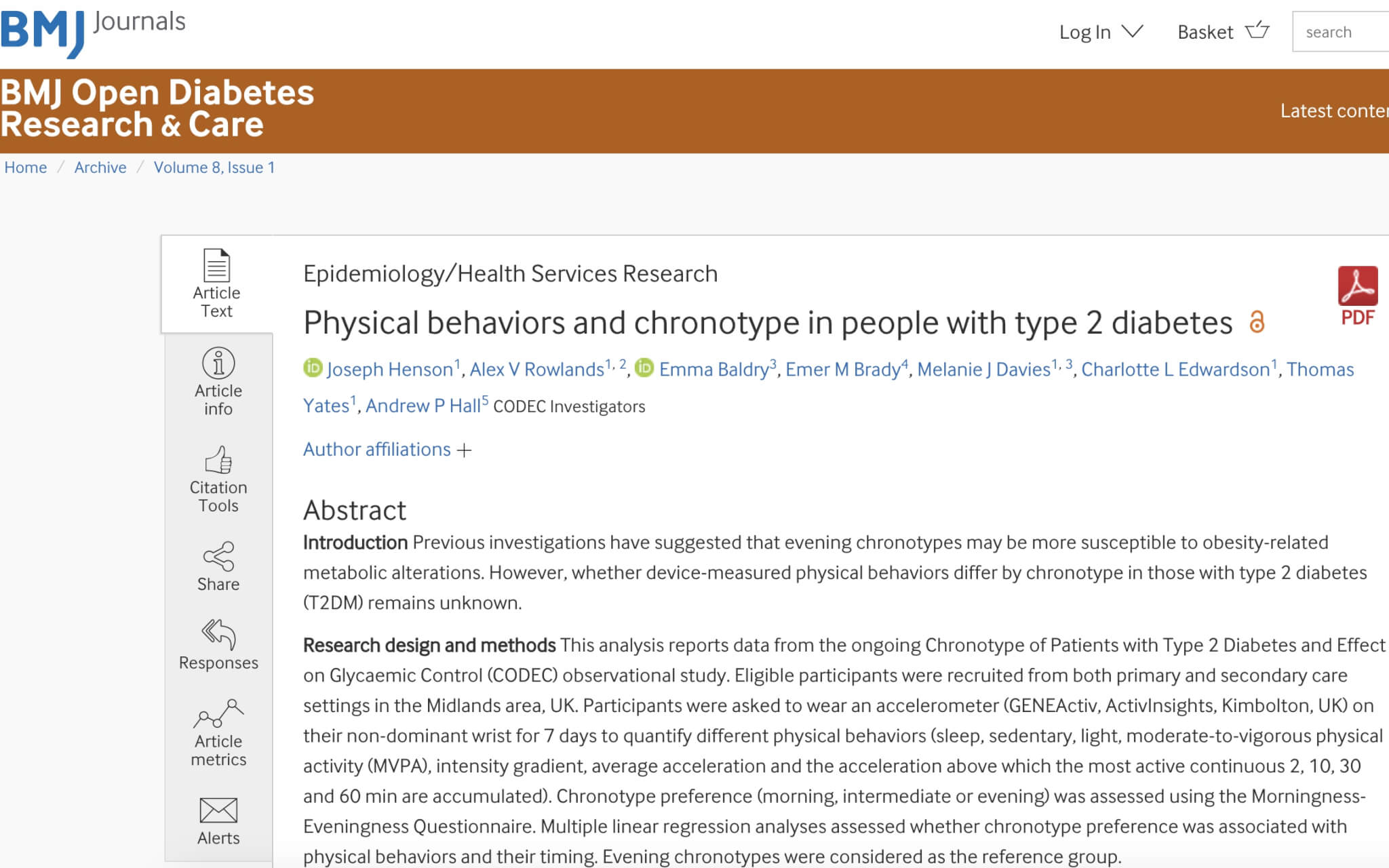 Physical behaviors and chronotype in people with type 2 diabetes