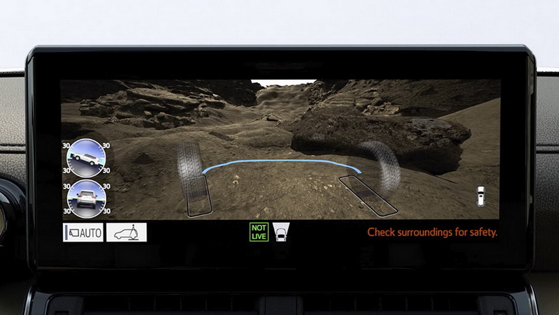 這次Land Cruiser大改款的車長為4,990mm車寬為1,980mm軸距為2,850mm,比起改前更為放大,底盤採用的是TNGA GA-F的平台打造,擁有更輕的結構重量卻仍保有十足剛性,車重比起前代車型足足少了200公斤,距地更低的底盤高度不僅帶來更為靈敏的動態反應,對於乘坐舒適度的表現也有明顯提升,同時懸吊系統也換上進化的E-KDSS(Electronic Kinetic Dynamic Suspension System)電子懸吊,不僅能快速適應不同的路面狀態,對於抓地力的改善也有顯著進步,這次的地形模式則多了深陷雪地及Auto兩種選項,裝設在車底的鏡頭也可在螢幕上看見越野時的車底狀態,讓玩家在跨越崎嶇地形時能即時得知車底情況強化行進時的判斷力。