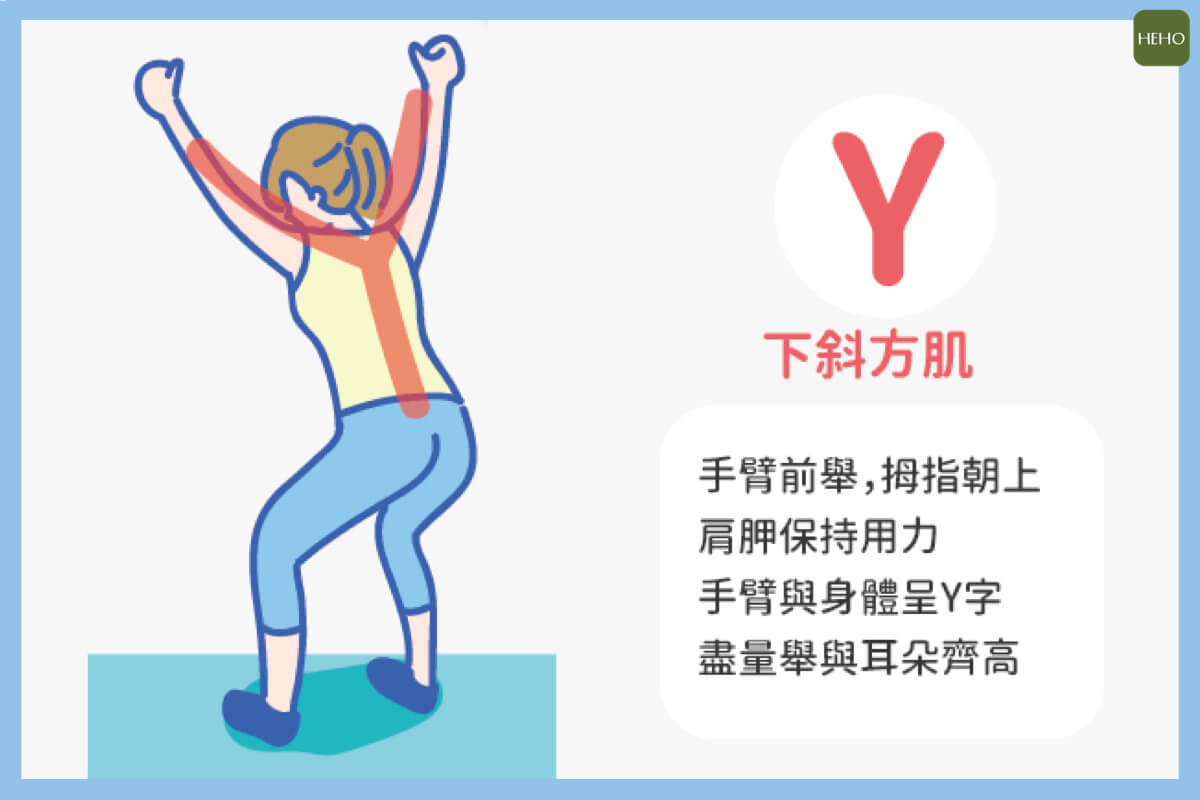 - 動作 Y ,鍛鍊肌肉為下斜方肌