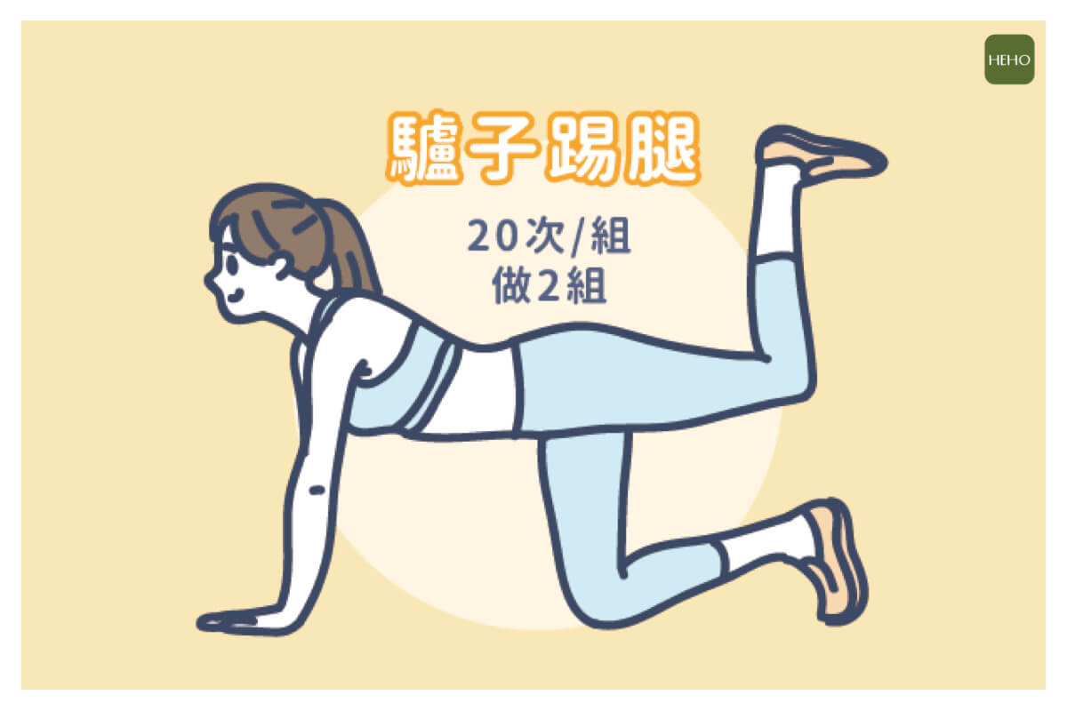 - 舉到最高的位置後停約 3 秒,再將腳放下回到一開始的跪姿。