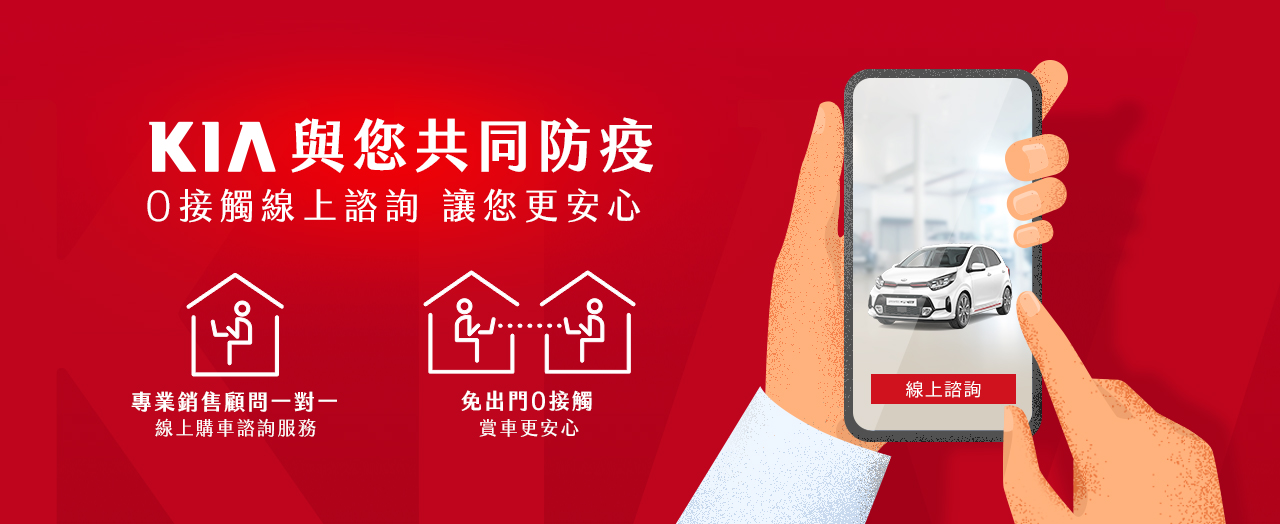 KIA 即日起推出「0 接觸一對一線上購車諮詢」服務,消費者只要於官網上提前預約,勾選線上購車諮詢服務,KIA 專業銷售顧問便將主動聯繫,並依照消費者需求運用通訊軟體,於展示中心進行一對一線上 LIVE 介紹車款,讓消費者即使在家,也能 0 接觸地安心賞車。