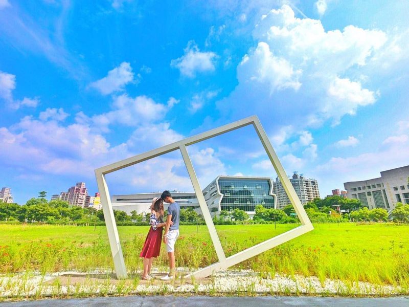 白色鋼骨半圓弧形的禾豐橋,抬頭仰望就能看見藍天白雲,陽光讓禾豐橋漂亮的弧形倒映在地上,彷彿走入了夢幻的幾何隧道,也是台中這麼多造型橋中少數有頂蓋的橋,還沒施工完畢就吸引大家拍照打卡,但為了安全起見想拍照可先詢問工人,不要擅自闖入喔。