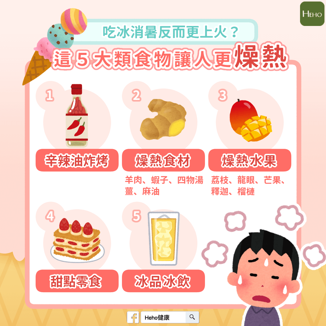 炎炎夏日,讓人忍不住就想去冰箱拿點冰品冰飲幫自己消消火。但太常吃冰會讓體內的熱氣無法自然排出,使得整個人越吃越燥、越上火。