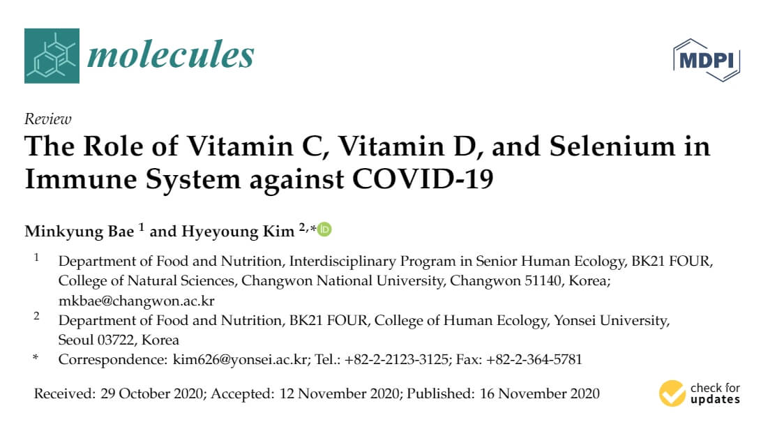 歐洲食品安全局 (EFSA) 評估並認為六種維生素(D、A、C、葉酸、B6、B12) 和四種礦物質(鋅、鐵、銅和硒)對免疫系統的正常功能非常重要,其中《分子》期刊的回顧型文獻特別提出維生素 D、維生素 C 和硒在免疫系統中的作用,以下分別說明: