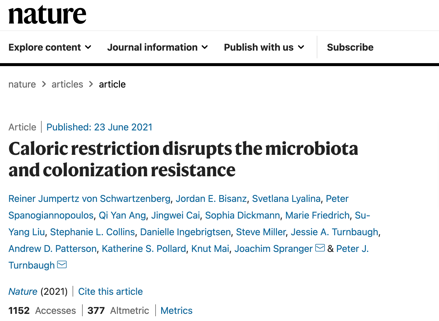 德國柏林的夏里特醫院和舊金山加州大學的研究人員,搜羅了 80 名停經後女性,他們的體重都屬於「超重」,有些人只是輕微超重,有些人則是嚴重肥胖;研究人員將他們分為 2 組,一組讓他們每天只攝取 800 卡路里,另一組正常吃,16 週之後結果發現低熱量飲食的人雖然體重下降,但腸道健康卻被改變,變得更容易發炎,就像吃了大量的抗生素一樣,這份研究也刊登在最權威的期刊之一《自然》(Nature)上。