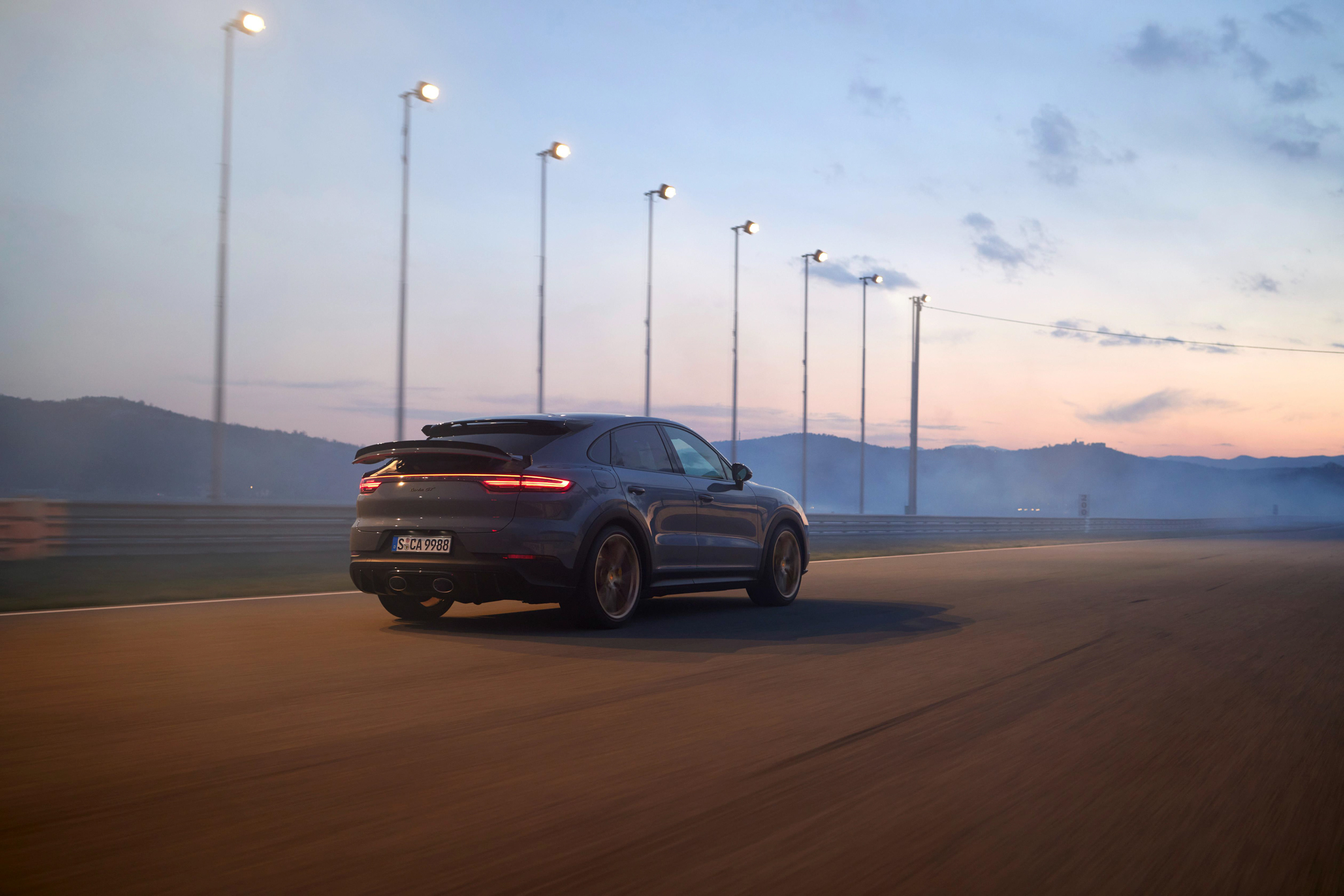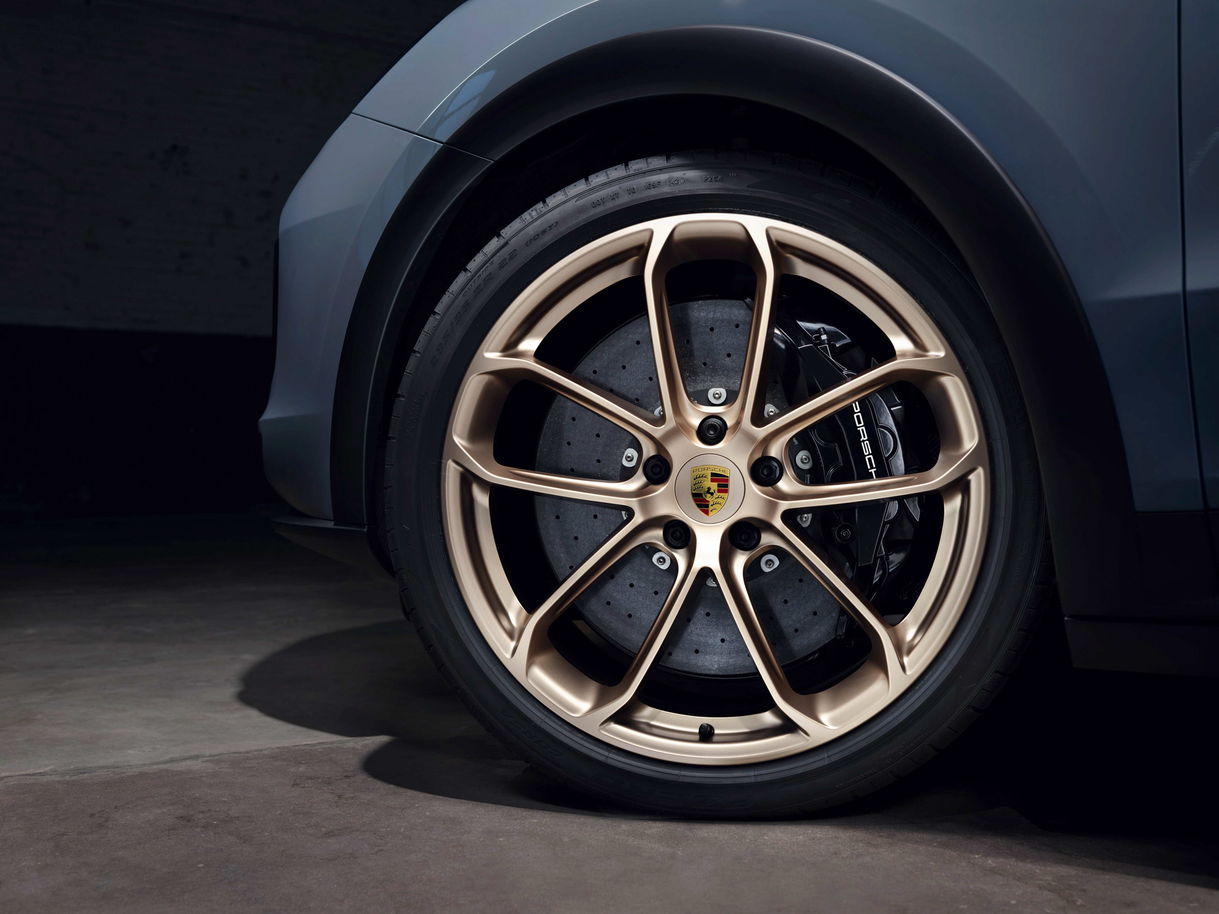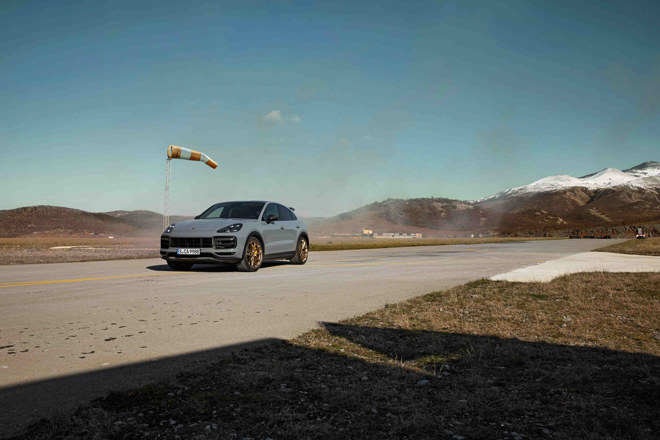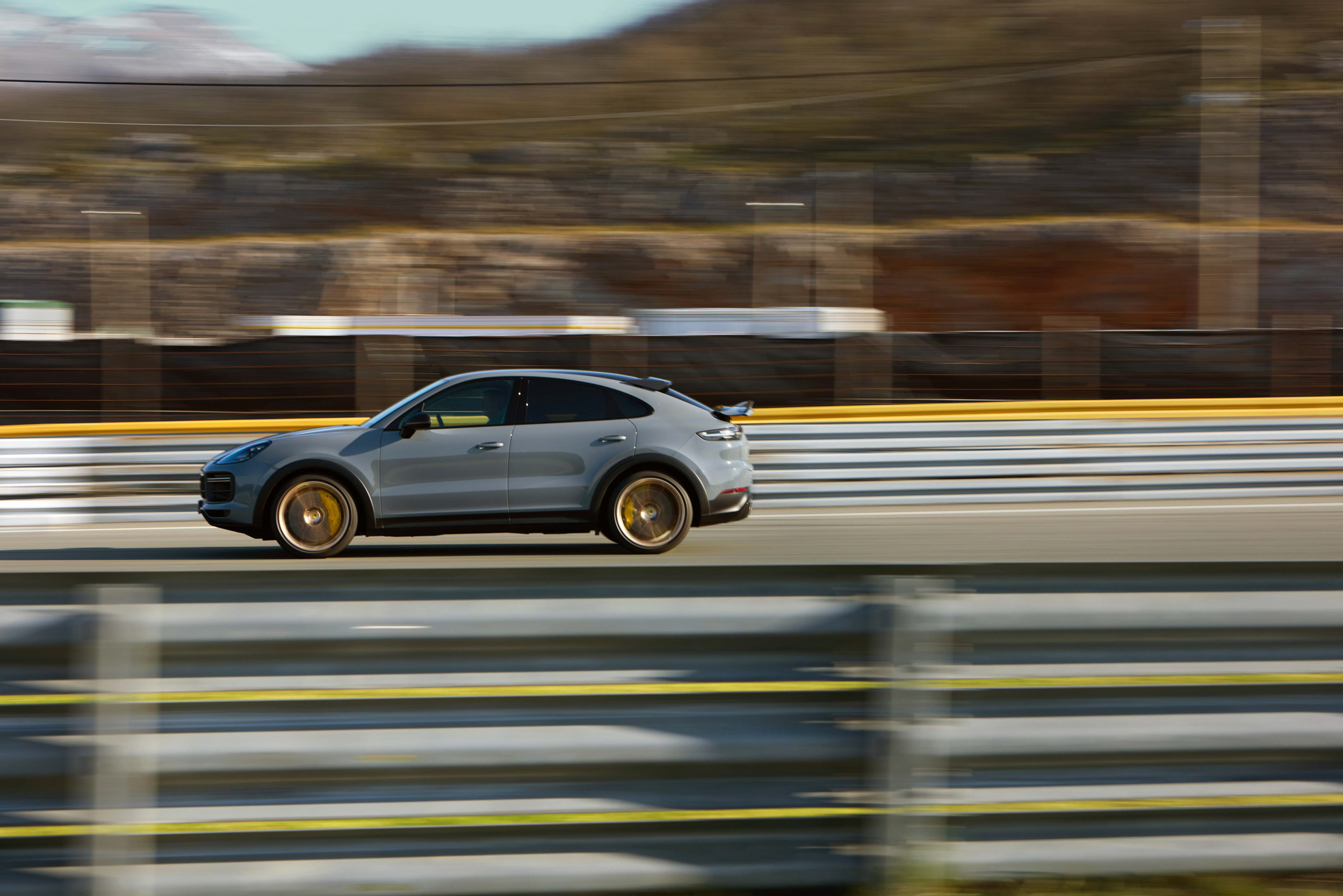 與 Cayenne Turbo Coupé 相比,Cayenne Turbo GT 車身高度降低了 17 mm,被動式底盤元件與主動式控制系統皆更新設計和優化,並精確校正以確保系統之間能天衣無縫的整合,以實現更卓越的駕馭感受與性能表現。舉例而言,三氣室氣壓式懸載系統強度提升 15%,保時捷主動式懸載調整系統(PASM))的減震特性與動力輔助轉向升級系統 (Power Steering Plus)、後軸轉向系統皆因應車輛特性進行調整,保時捷動態底盤控制系統(PDCC)中的主動式防傾穩定系統亦由性能導向軟體控管,以提供更出色的防傾穩定性和抓地力、更精準的轉向表現,極更高的過彎速度。保時捷扭力分導系統(PTV)允許更高的扭力分配比,因此全面進化的前軸更保證了卓越的操控表現。Turbo GT 的前輪較 Turbo Coupé 加寬 1 吋,負外傾角增加 0.45 度,提供專為 Turbo GT 開發的新型 22 吋Pirelli P Zero Corsa 高性能輪胎與地面有更大的接觸面積。保時捷陶瓷複合煞車系統(PCCB)亦為此車型標準配備之一。