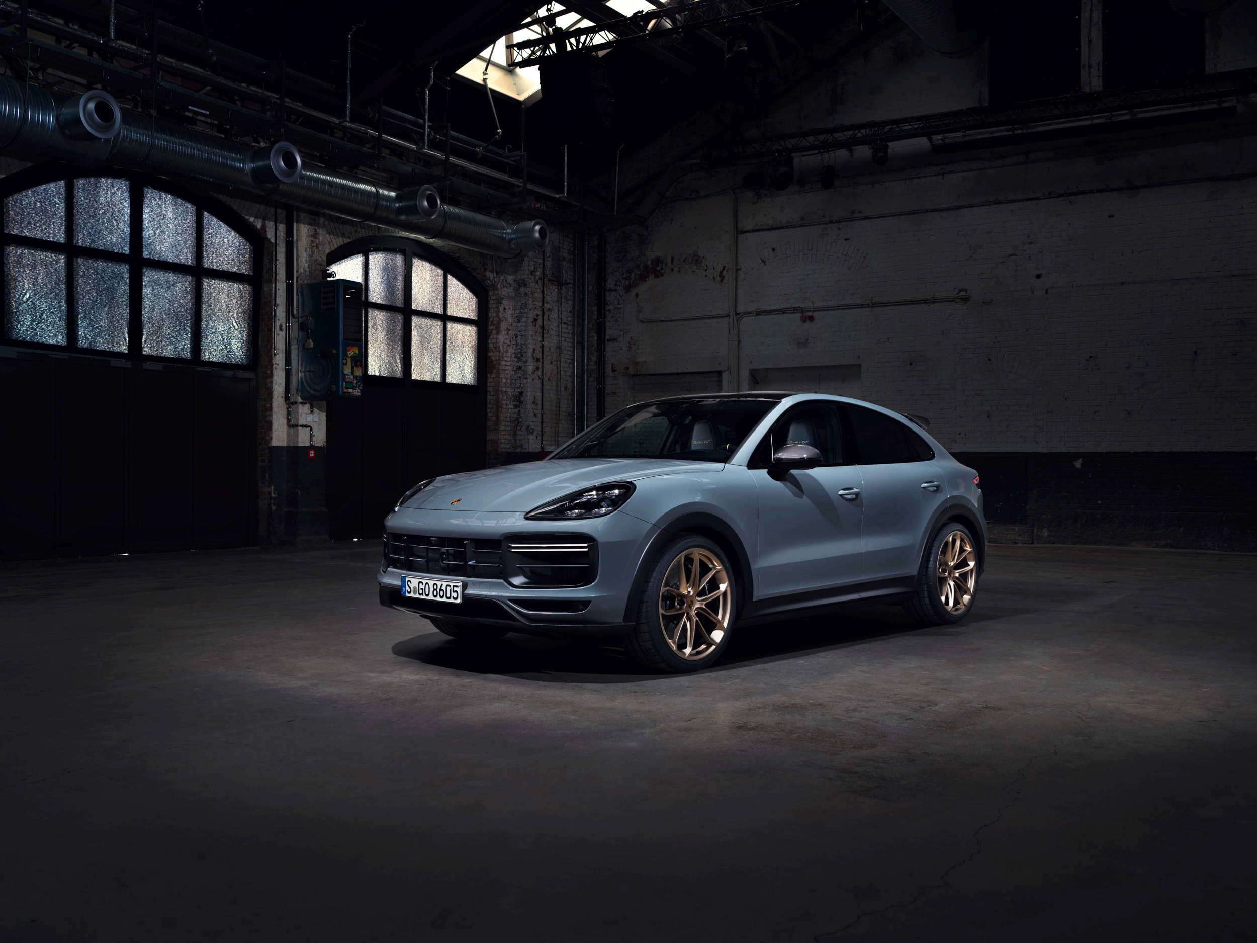 Cayenne Turbo GT 的革新設計展露其無與倫比的運動風格,全新冰極灰烤漆塗裝提供車主選擇。GT 專屬的前保險桿、外觀醒目的前擾流板,以及擴大的側邊冷卻進氣孔,皆構築出風格獨樹一幟的車頭樣貌。碳纖維形塑出的車頂輪廓,霧面黑色輪拱造型搭配 22 吋 GT Design 輪圈施以釹銀色烤漆,共同營造出優雅的側面車身。同樣是 GT 專屬的還有縱向安裝於車頂擾流板上的碳纖維側板,後擾流尾翼尺寸亦較 Turbo 車款搭增加 25mm,這樣的設計足以讓車輛於極速行駛時,再增加達 40kg 下壓力。碳纖維製成的後下擾流板更增添車尾的跑格。