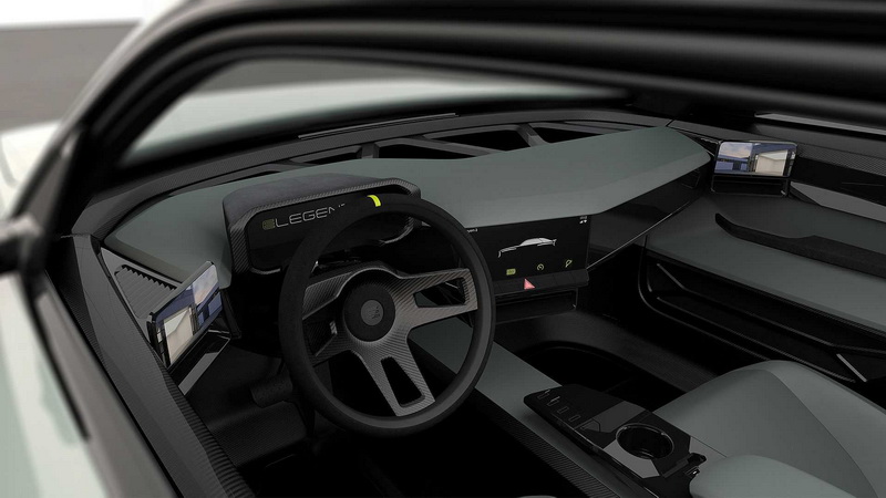 這部ELegend EL1的外型擷取自1980年代Audi Sport Quattro的方正架構,從引擎前緣的黑色長形方框定調出前緣的面容特色,搭配直線條的水箱罩及大燈飾框營造出復古氛圍中帶點前衛的視覺感受,此概念同樣延伸至葉子版、車門及尾燈輪廓,而白色五幅式輪圈是當時拉力賽車的正字招牌,充分詮釋出80年性能車該具備的硬派的本色,同時這部ELegend EL1採用的是前19後20吋的胎圈,塞滿輪拱的效果讓車側更具氣勢,由於這是部電動車,在電池組全數放置車底板的狀態下,預計配重會比當年採用五缸引擎的賽車來的更好操控。