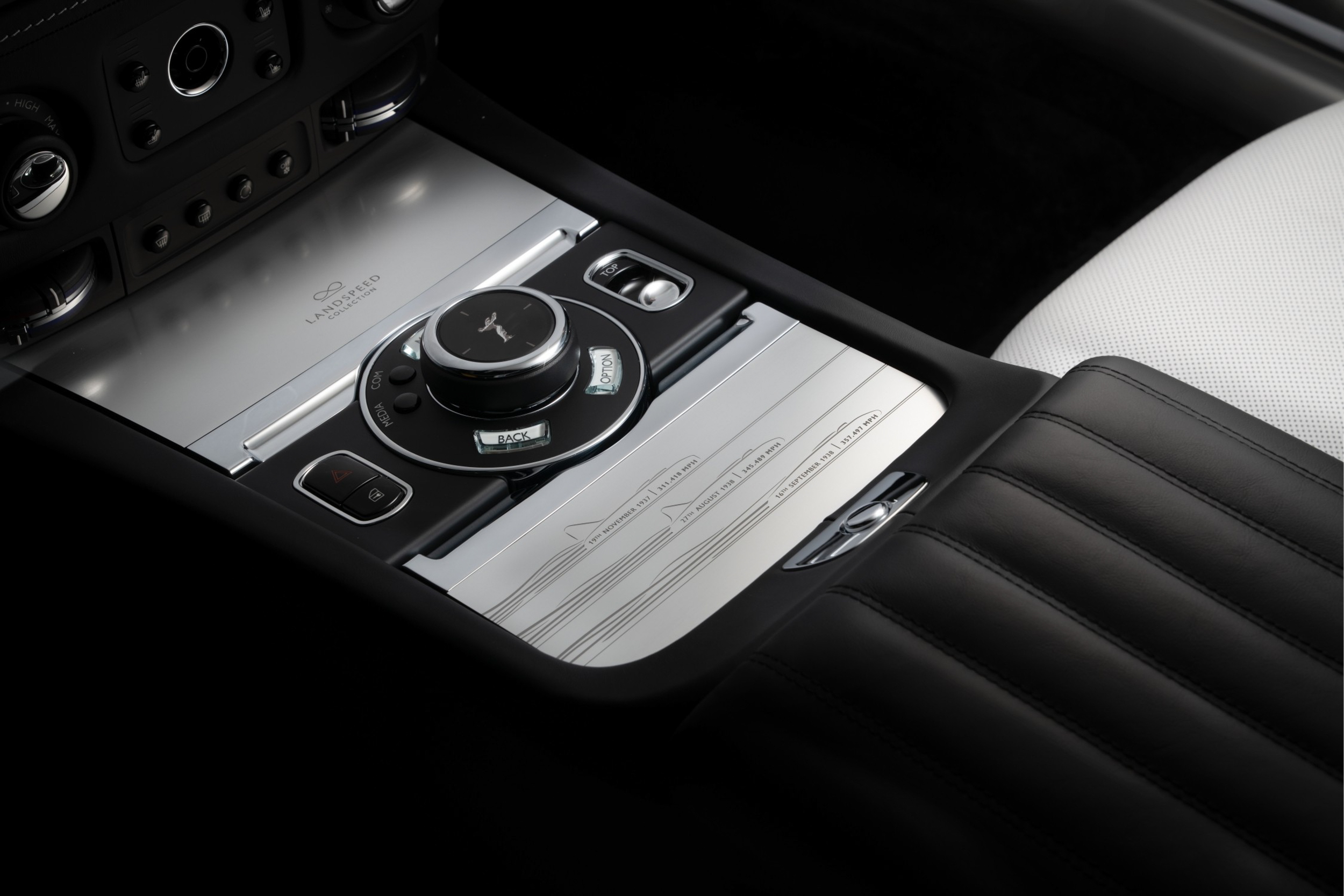 這個簡單而巧妙的想法在 Wraith 及 Dawn Black Badge Landspeed 典藏版中被清晰喚醒,方向盤中央上部點綴著細膩的刺繡深色線條,該線條一直延伸至主駕座椅的中心線,這一設計也強調了 Wraith 及Dawn 的駕駛屬性。博納維爾鹽灘看似光滑,但細小裂縫層層密佈。這種獨特的紋路完美再現於 Wraith 及 Dawn Black Badge Landspeed 典藏版的儀錶台和中控台的木質飾板中,表面本身還進行了數位化還原。Wraith 及 Dawn Black Badge Landspeed 典藏版車內前部面板採用拋光陽極氧化鋁。這些車內設計與 Thunderbolt 遙遙呼應,並傳承了Thunderbolt車型獨特輪廓、傳奇記錄等無數細節。Wraith Black Badge Landspeed 典藏版還描繪了喬治·艾斯頓駕駛時所見的景色在後排座椅之間上方位置雕琢有博納維爾的銀島山脈的輪廓。
