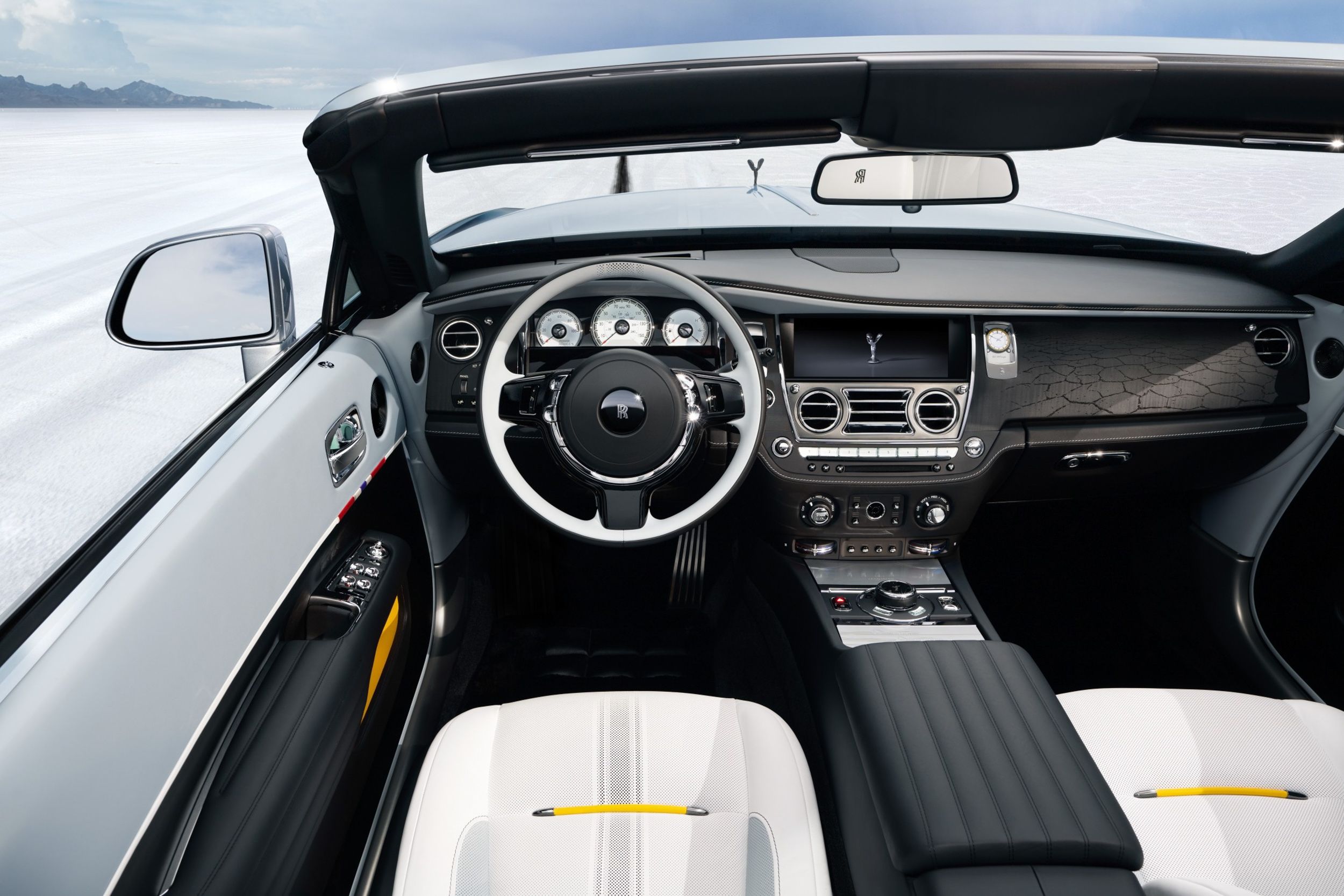 Rolls-Royce Wraith 和 Dawn Black Badge Landspeed 這兩款典藏版車型均採用精心打造的雙色設計,將黑鑽石金屬色(Black Diamond Metallic)與新的客製化配色博納維爾藍(Bonneville Blue)結合在一起。這一配色在 Landspeed 典藏版的展現可謂極具意義,在陽光照耀下,該配色由淺藍色慢慢轉換到銀色,仿佛是目光從博納維爾上空的廣闊天空延展到 Thunderbolt 鋁制機身上反射出的脆鹽平原。