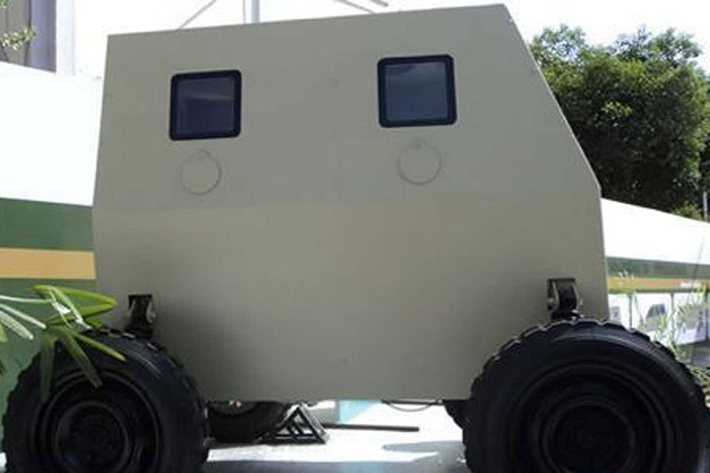 這台外型有點呆萌,四顆輪胎外露,很像是用紙箱或瓦楞紙加上透明壓克力所拼拼湊湊而來,然而它卻一輛不折不扣的裝甲車!在Tata集團中同樣也有投入軍工業,加上造車資源,長期以來都有生產軍用車輛,而這次介紹的MBPV〈Micro Bullet-Proof Vehicle〉室內專用微型防彈攻堅載具,是Tata Motors針對室內空間所設計的攻堅車輛,過去一般面對商場、車站或機場或其他室內空間的犯罪行為,執法人員大多都無法有足以抵抗槍枝攻擊的載具可使用,都是以手持盾牌步行為主,為增加機動性與更好的防護性,Tata Motors設計出MBPV〈Micro Bullet-Proof Vehicle〉微型防彈攻堅載具。