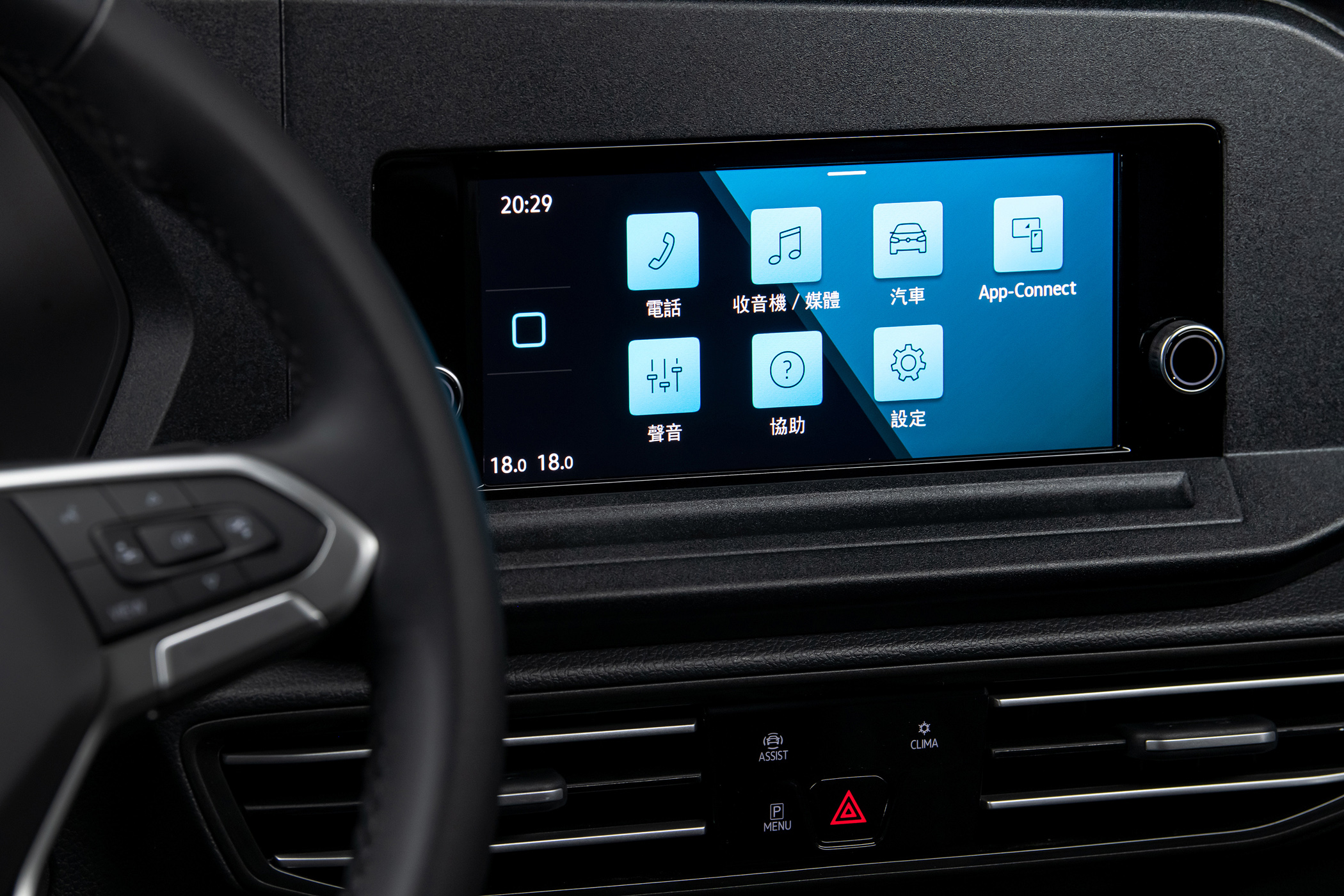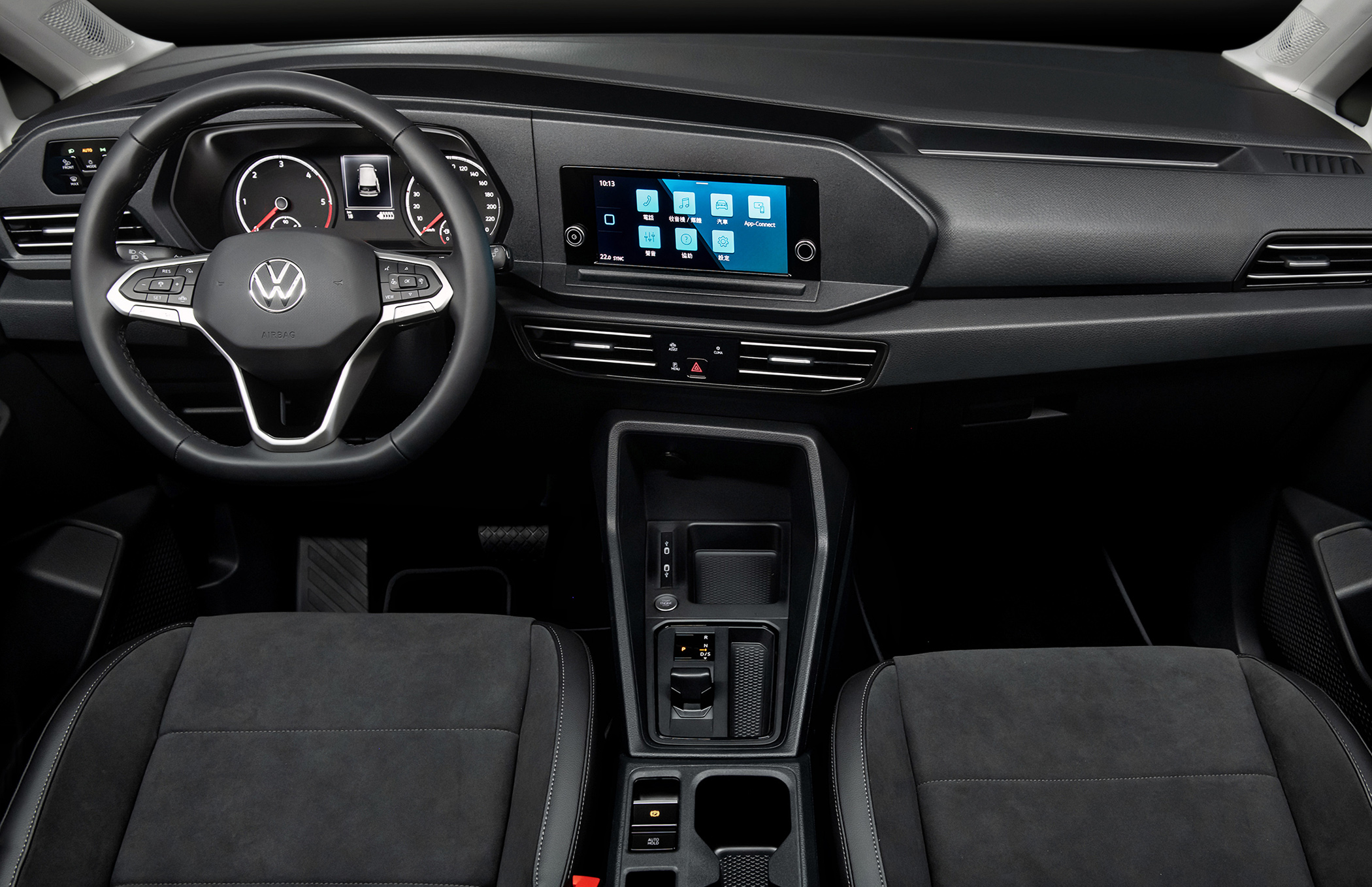 全新 Caddy Maxi 充滿現代感同時兼顧實用機能性的車室座艙,採用福斯車系新世代中控設計思維,透過整合全新一代觸控面板,以數位化、簡約化、直覺化的面板顯示取代傳統旋鈕與按鍵,舉凡位於駕駛座左側的數位觸控車燈組控制面板、中控台觸控式功能快捷鍵整合多項車用功能、新世代多媒體影音系統、電子線傳式排檔系統、按鍵式電子手煞車及觸控式車艙 LED 照明燈等。同級車款中最大的中控台尺寸:Composition 8.25 吋觸控螢幕原廠影音系統,並結合 APP-Connect手機多媒體連結功能。至於融入駕駛導向設計的中控台,不僅讓駕駛者使用上更為便利,也更易讀取各項行車資訊;車上的三幅式真皮多功能方向盤(含換檔撥片),可整合行車資訊控制、多媒體系統控制、IQ.DRIVE智能駕駛輔助系統,達到手不離盤即可進行直覺化操作。