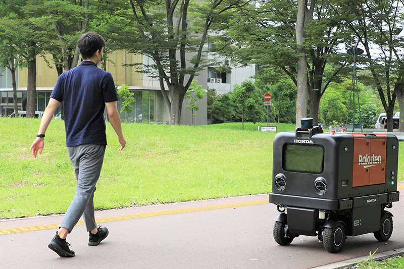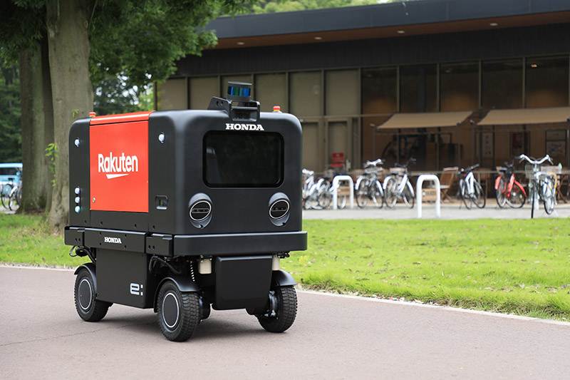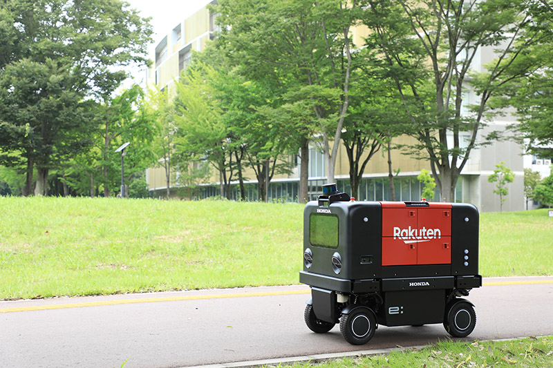 而Honda與樂天的運行示範實驗,使用以一輛Honda開發的自動配送電動載具搭配樂天所設計的配送置物箱進行自動配送實驗,實驗場域位於筑波大學內與部分公共場域全長約500公尺之道路,全程以樂天移動之通信網路進行遠端監控。首波實驗於2021年7月19日(星期一)~8月31日(星期二)間進行。