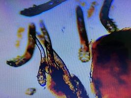 一名在紡織廠工作的邱小姐,原本皮膚狀況都很穩定,不過因國內疫情升溫,長期戴口罩加上工作環境悶熱,使得她酒糟發作,起初至他院診斷為脂漏性皮膚炎,透過類固醇治療都沒有改善,反而泛紅更嚴重。後來經莊禮謙醫師的檢驗,在顯微鏡底下發現她每平方公分的皮膚竟有100多隻螨蟲,十分嚇人,也確診是蠕形螨蟲所引起的酒糟性皮膚炎,後來使用抗螨蟲藥物治療加上正確保養,皮膚泛紅的症狀已逐漸改善。