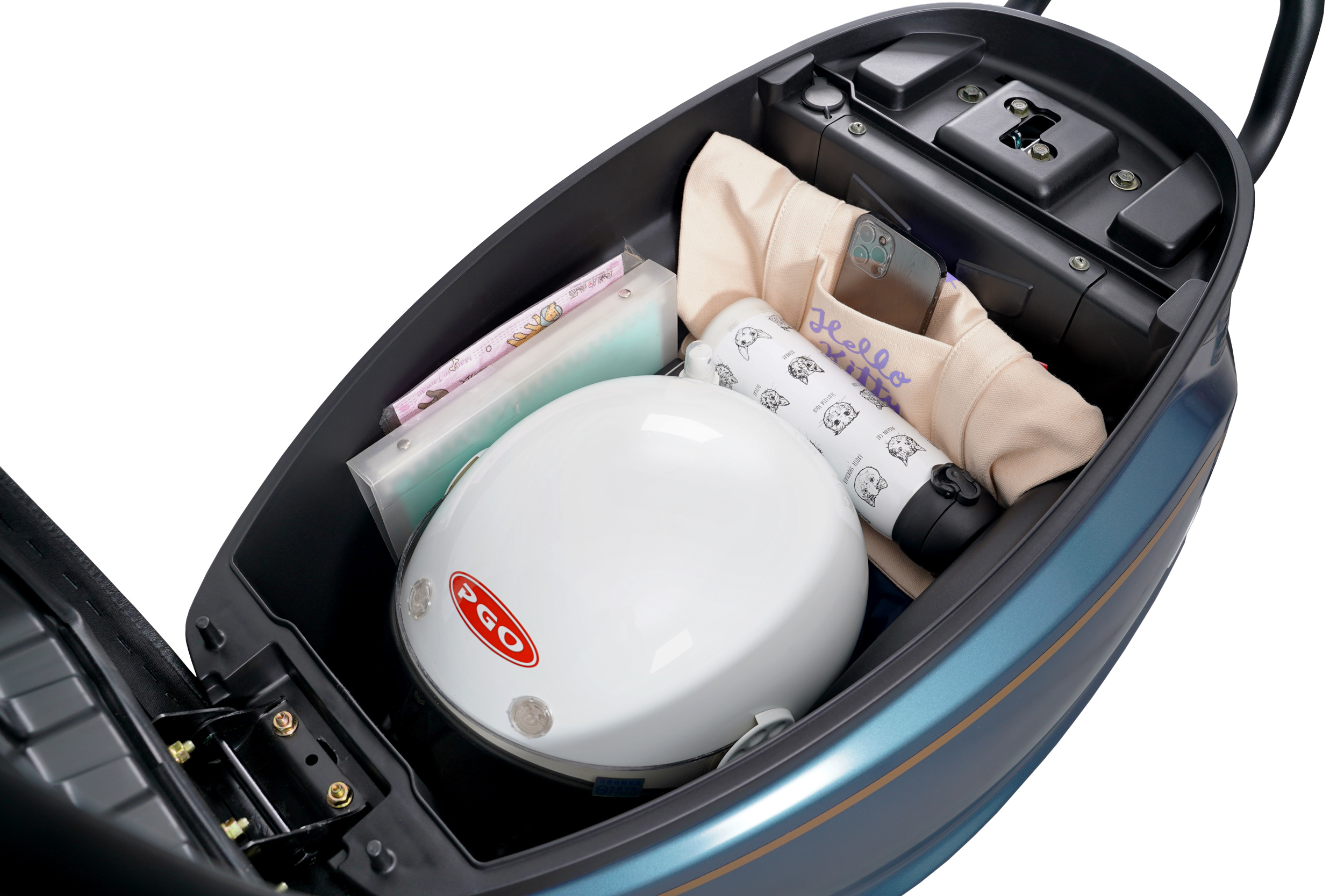 PGO Spring 結合 Keyless 無鑰匙系統,搭配  NFC 智慧鑰匙卡片使用,高達 281 兆組防盜編碼,不僅收納便易,還能確保極高防盜性,輕靠指定位置「逼」一聲,即可啟動多功能旋鈕。此外,PGO 同級車首創全新智能 APP 功能,不但整合了車況診斷、保養維修履歷外,更結合儀表防盜功能、夜間 LED 氣氛燈控制,跟隨天氣、跟隨心情,到哪都能輕鬆變換新色彩。