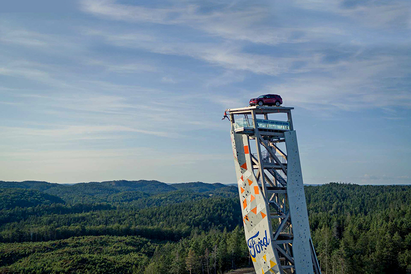 為了刺激買氣或讓更多消費者知道自家產品,不少車廠都會用獨特方式宣傳,藉以吸引消費者目光。由於挪威是電動車市場普及率高的國家,為進一步宣傳電能車款,日前Ford與挪威利勒桑Over攀岩塔合作,將Explorer PHEV放至攀岩塔頂端展示。為了成功將Explorer PHEV放至頂端,除出動吊車外亦須建造能安穩擺放車輛的平台,而透過在攀岩塔上展示車輛,不僅可吸引消費者目光,同時也展現Explorer PHEV居高臨下氣勢。