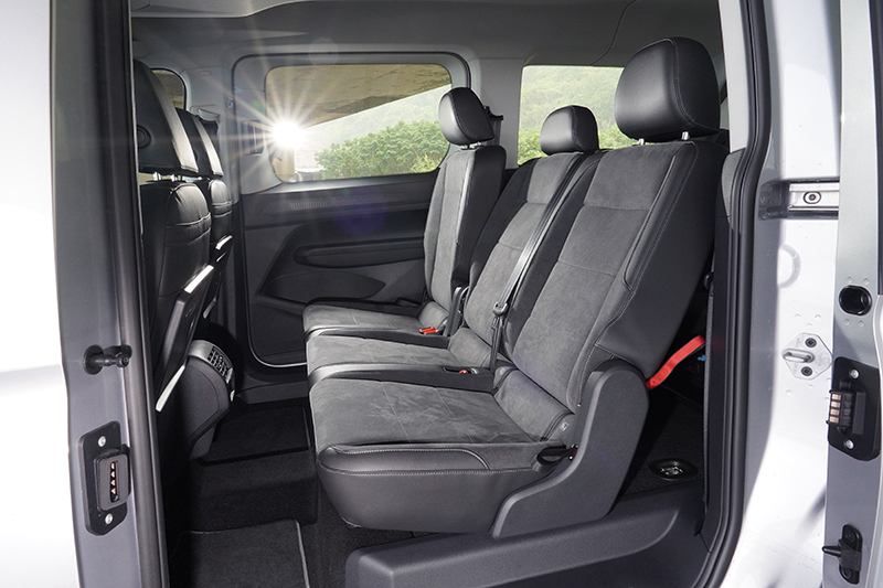 全新Caddy Maxi採用福斯車系新世代中控設計思維,透過整合全新一代觸控面板,以數位化、簡約化、直覺化的面板顯示取代傳統旋鈕與按鍵。 進入車內,中控台設計完全跳脫過去的單調,同時導入時下流行的數位與觸控控制介面,都向當前福斯的新世代車款看齊,頭燈控制開關改以駕駛座左側的數位觸控車燈組控制面板取代,中央的Composition 8.25吋觸控螢幕原廠影音系統,具結合APP-Connect手機多媒體連結功能,使用上十分便利,鞍座上將排檔介面改為與Golf,甚至是同集團Porsche新車相同的電子線傳式撥桿,並且配有按鍵式電子手煞車與AutoHold功能,鞍座前方則設有兩組Type-C插孔。另外,值得一提的是,雖然車內陳設大多還是採用塑料材質,但福斯商旅卻在不同區塊上以不同的壓花、壓紋來提升視覺上的質感與層次感,也算是相當用心。