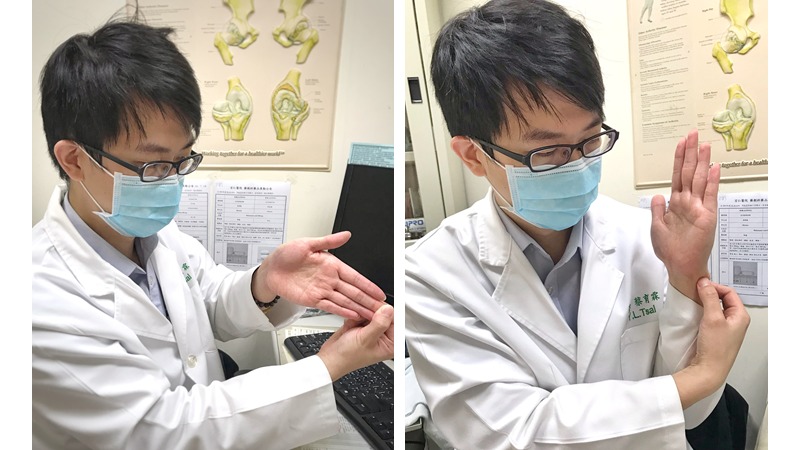 ▲(圖3. 錯誤握拍姿勢。動作示範/ 丁雅婷物理治療師 圖片來源/ 蔡育霖醫師提供)