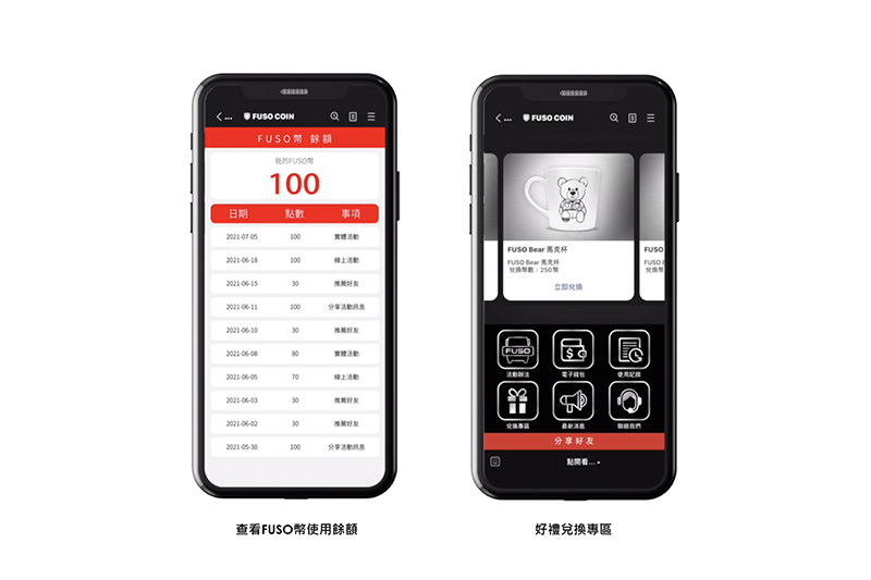 執行長王立山解釋:「從2018年行銷Fuso Hero的概念及精神,這3年來透過Fuso Hero相關活動及營業線的共同經營下,客戶從認同Fuso Hero身分象徵,慢慢匯聚(United)成為一個Fuso 社群;2020年隨著疫情開始,Fuso於是計劃為這個Fuso United社群打造一個數位的溝通平台,並發行其專屬的電子錢包,於是Fuso幣就誕生」,不限車主,只要加入Fuso LINE官方帳號即可獲得100個Fuso幣,Fuso也會不定期於LINE官方帳號與會員互動及提供活動,只要完成任務就可賺取金幣,累積一定的點數即可兌換品牌周邊好禮及保養