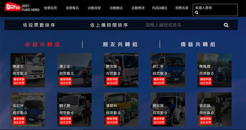 組)」、從事台灣傳統經典技藝或特殊趣味行業的「傳藝共轉組(個人組)」及與親友或好友合作協力,為社會公益努力,創造商業及社會價值的「親友共轉組(團體組)」,期望透過不同的分組,讓更多人看見不一樣的Fuso Hero,即日起於「2021 Fuso Hero風雲英雄榜全民共選」邀全台Fuso車主一同共襄盛舉,共轉未來!