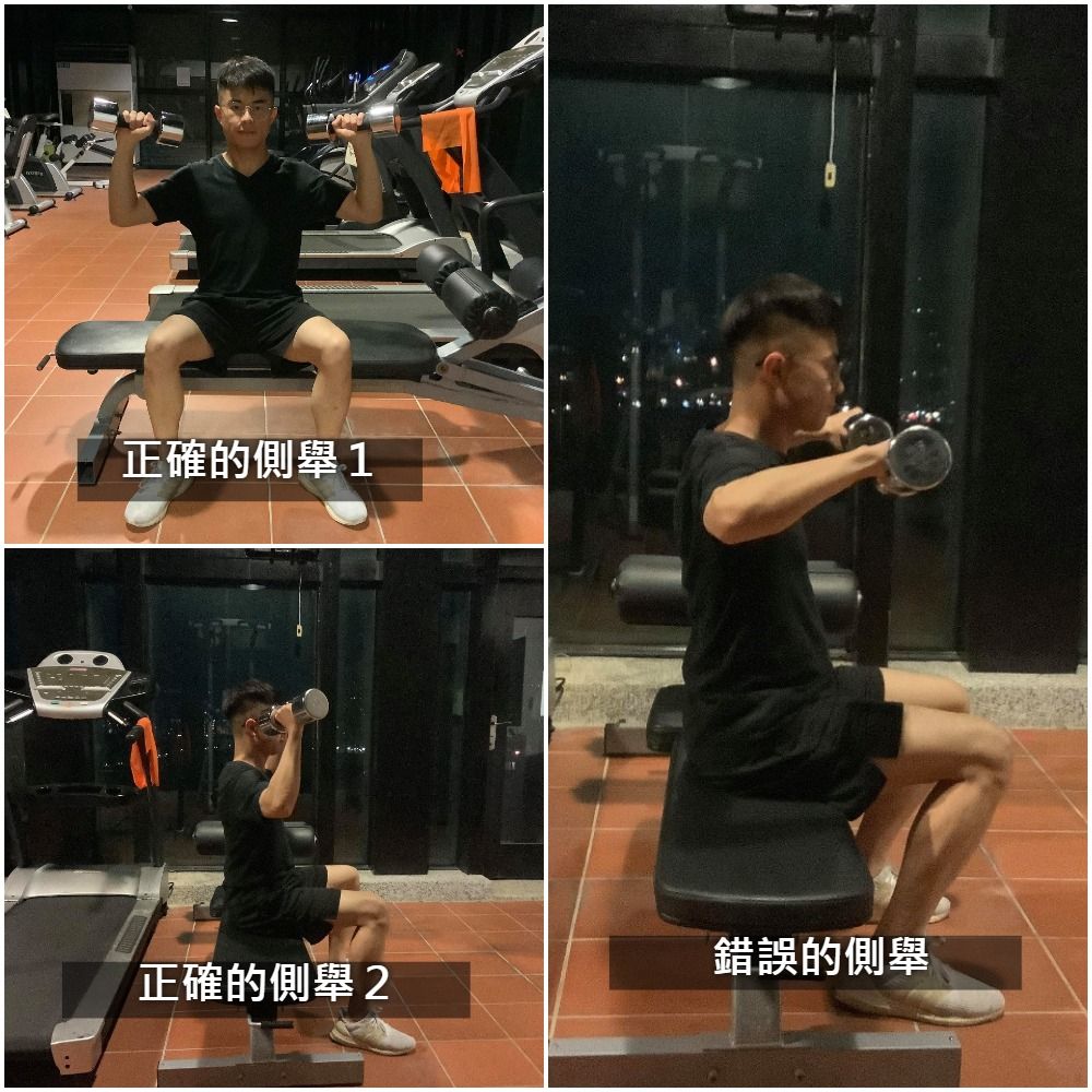 錯誤的側舉:肩膀內旋越多,在側舉到外展肩關節90度時,越容易造成夾擠。