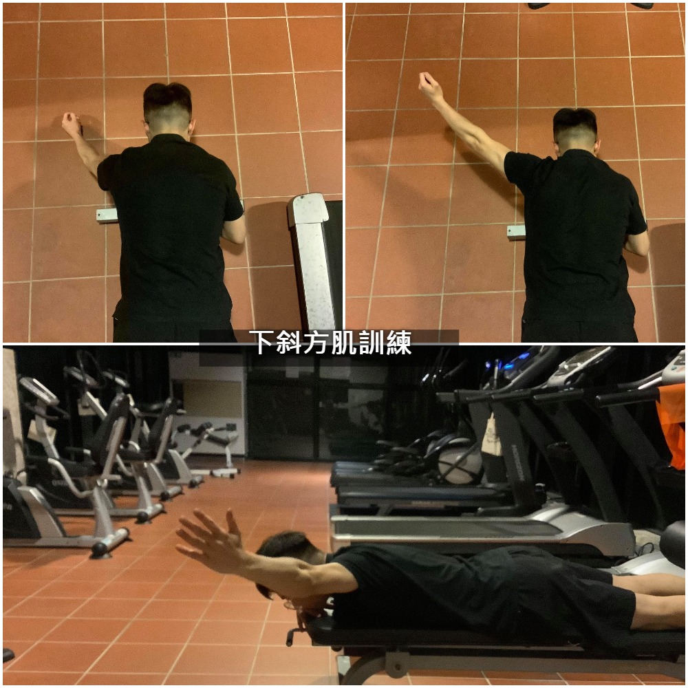 肩關節外展或屈曲過程中,肩胛需要穩定上旋轉、外展、後傾斜、穩定貼合胸廓後缘,若動態過程不穩定,或是使用內收下轉肌群或前傾肌群代償,較有可能造成肩胛下空間不足,造成夾擠現象或特定肌群使用過度。林杏青指出,訓練盂肱關節前要先確認肩胛靜態、動態穩定,而穩定來源來自前鋸肌和下斜方肌,可以先單一訓練此二肌肉力量和耐力,再以功能性訓練,確保日常生活能正確使用對的控制模式。