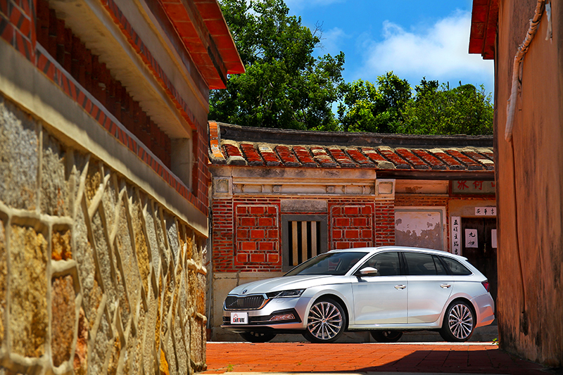 開著全新Octavia Combi在傳統建築中遊走觀光。