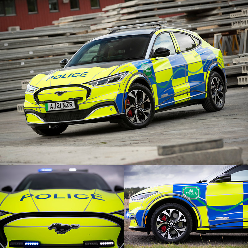 在英國伯明翰舉辦的Emergency Services Show緊急服務用品展中亮相的Mustang Mach-E Concept,是Ford與長期合作之警用車改裝廠Emergency Services Show共同打造,基本就是以Mustang Mach-E,披上最新設計的999英國警車的塗裝與警示燈、警笛等設備,其中全新塗裝採特殊高規格材質,以確保全天候的辨識性。