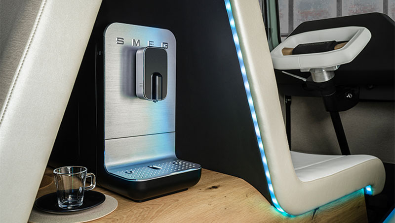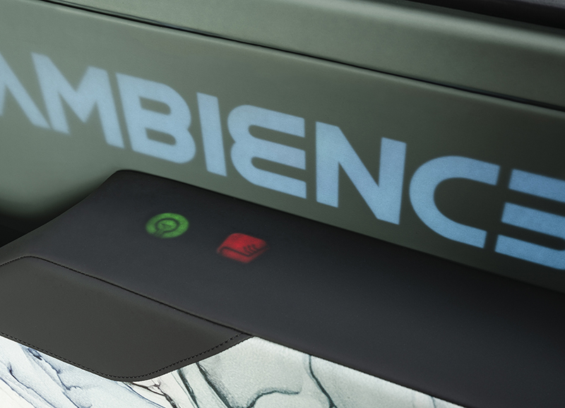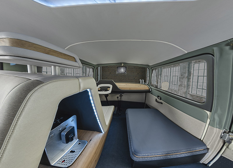 如同前文所說的,AMBIENC3皆使用天然可回收再生材質,或是回收再生材質,但在質感上並未有所妥協,車內充滿現代感,但也沒太過誇張的裝飾,除了完全重新設計的駕駛座與中控台,後艙設有獨立座椅與摺疊臥墊、以及附USB與藍牙功能之數位收音機與SMEG咖啡機,但主要的重點還是在材質的運用上,除了可回收、也具備耐髒汙能力。